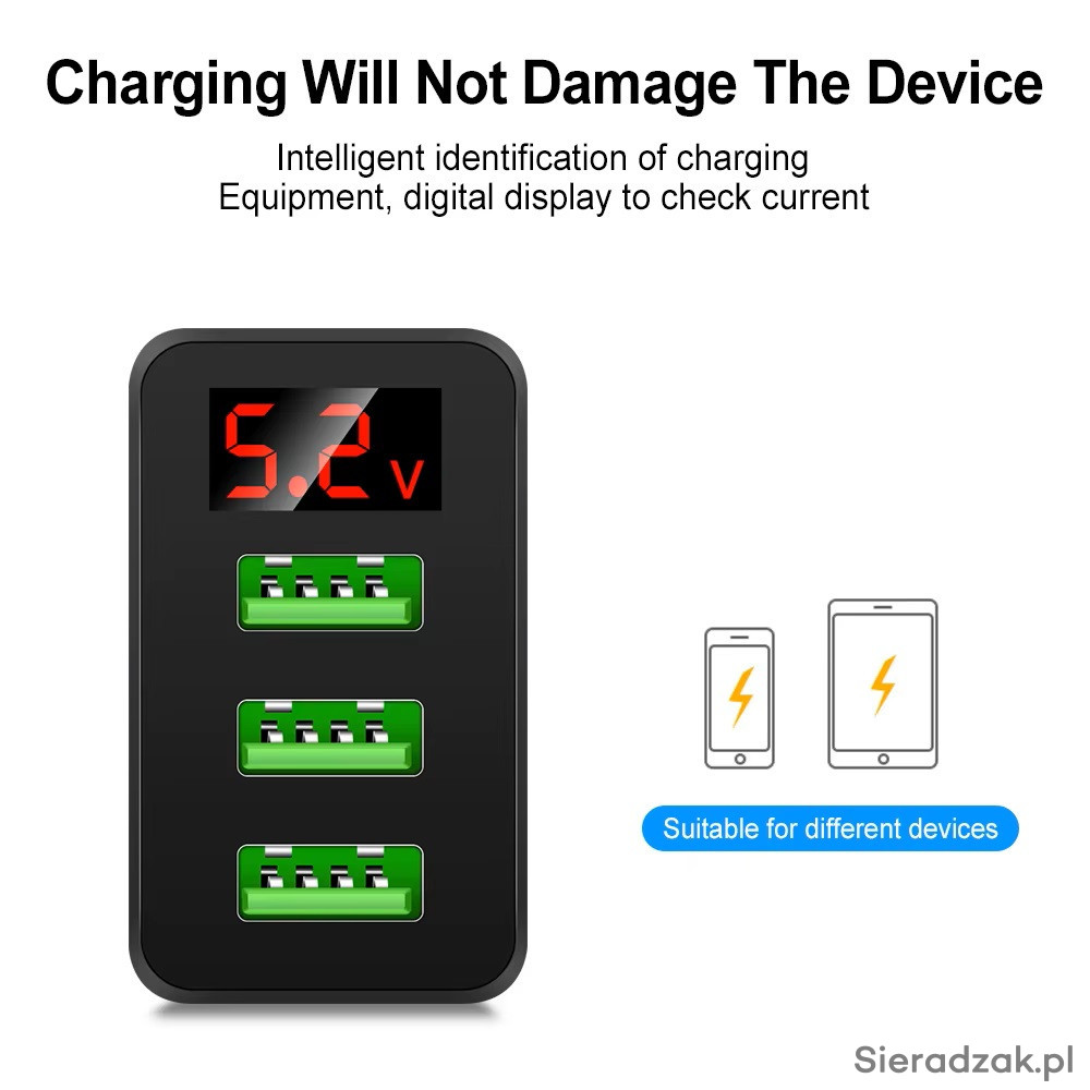 Rozpoznaje każde urządzenie i maksymalizuje wydajność ładowania, co jest przydatne ponieważ ładuje telefon lub inne urządzenie dwa razy szybciej.