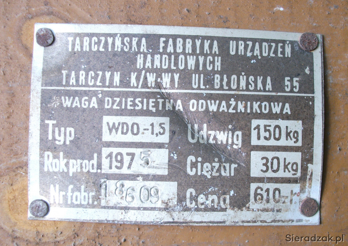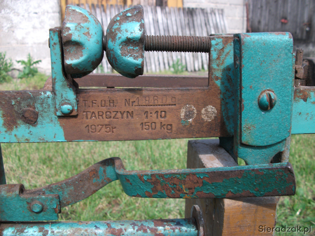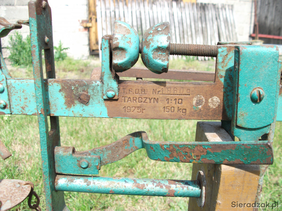 Sprzedam wagę rolniczą całkowicie sprawną. Waga jest cała w oryginale, posiada tabliczkę znamionową producenta: "Tarczyńska Fabryka Urządzeń Handlowych", rok produkcji 1975.