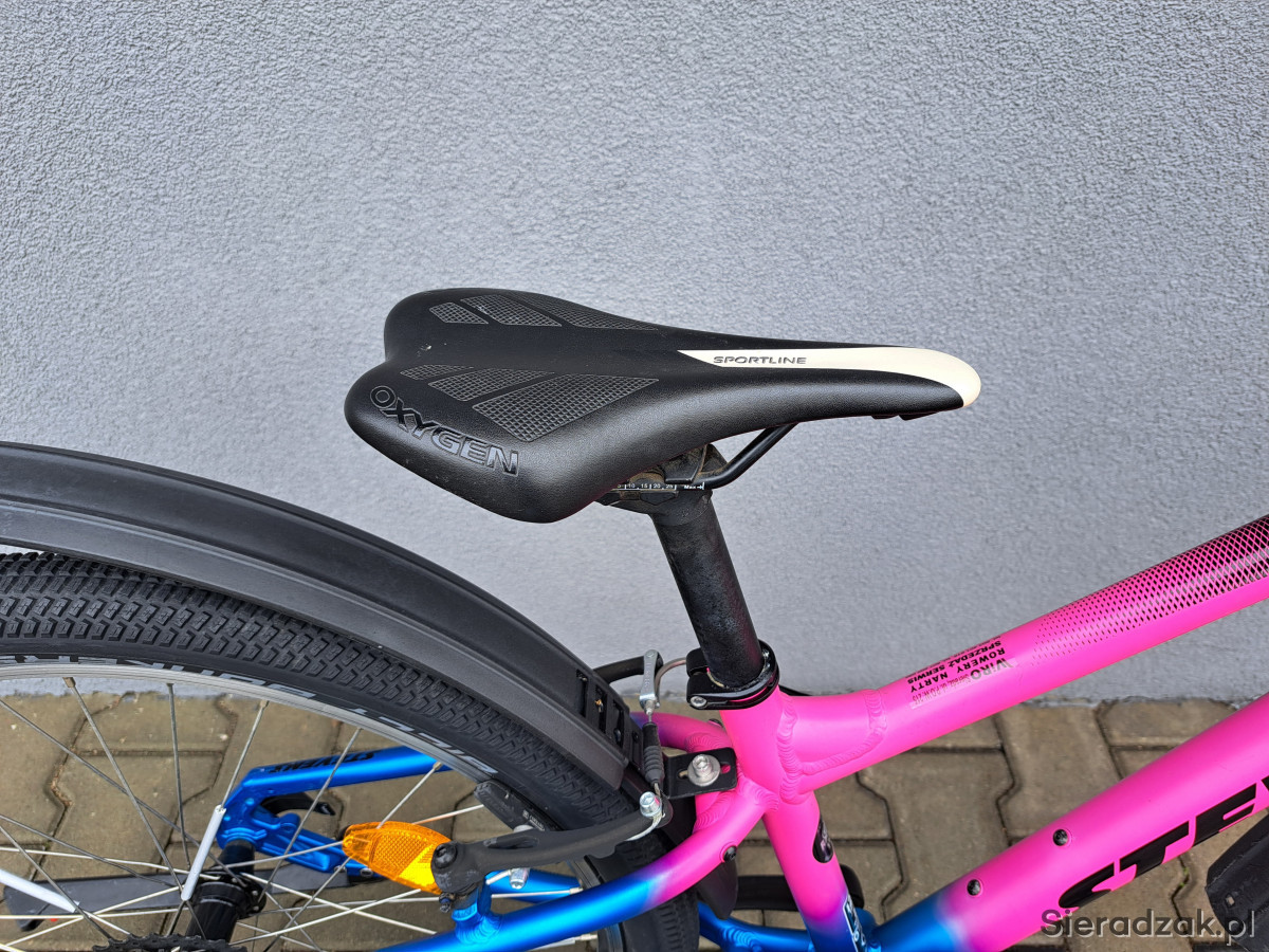 przerzutka 8-biegowa shimano altus,manetka revoshift shimano,siodełko oxygen,opony schwalbe billy bonkers,hamulce v-brake tektro.