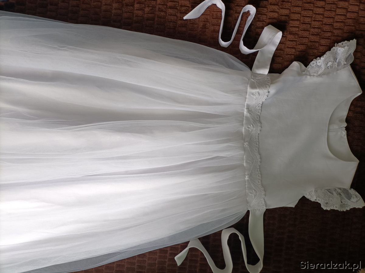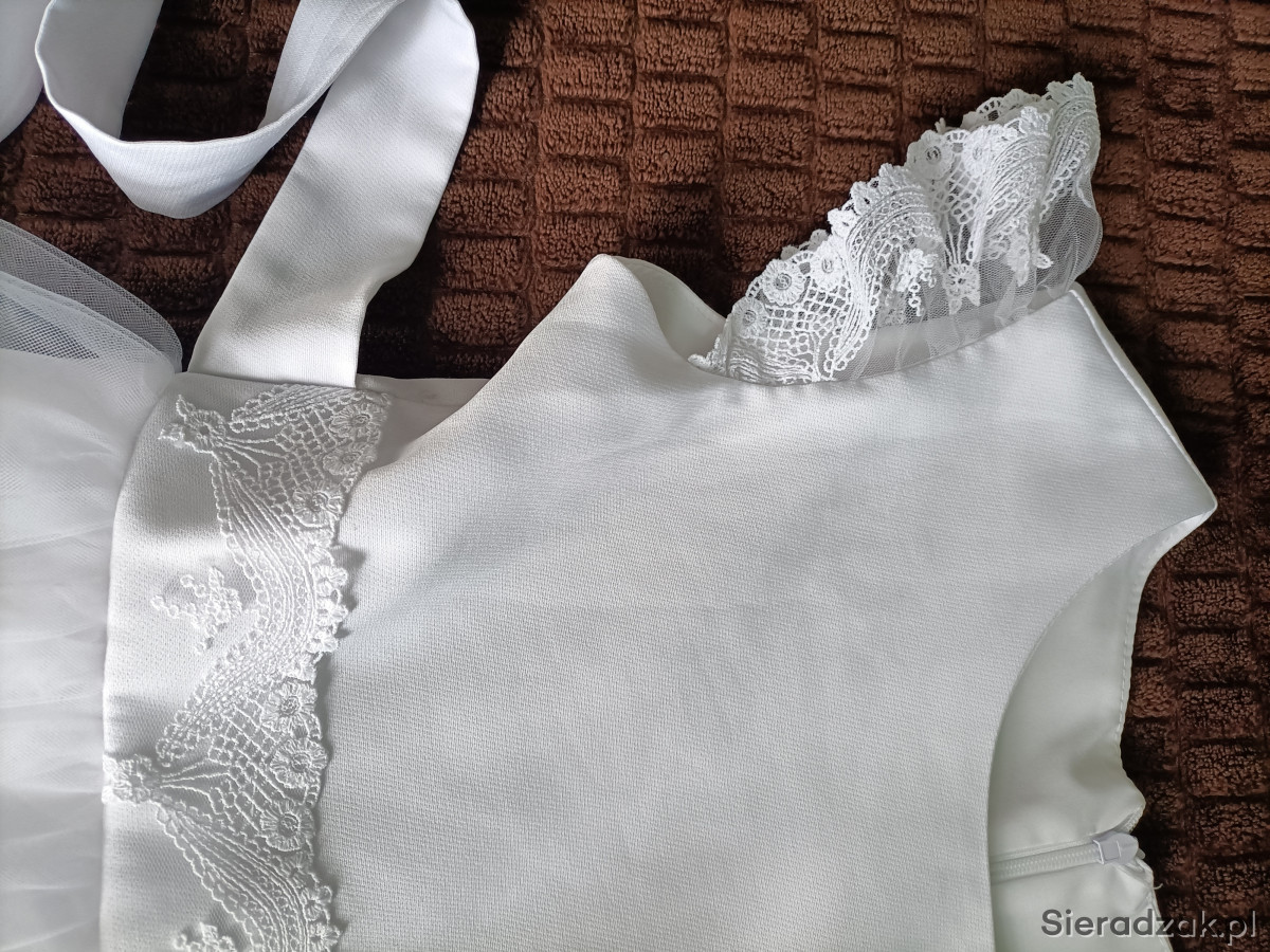 Sprzedam efektowną sukienke komunijną rozmiar 146 polski producent. Kolor biały. Sukienka użyta tylko raz ( na przebranie w komunię ) stan idealny tel 723506413