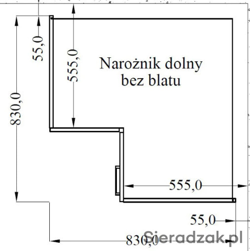 Kuchnia narożna 89cm*89cm BORDEAUX dąb sonoma fabryka Stolarz-Lempert.