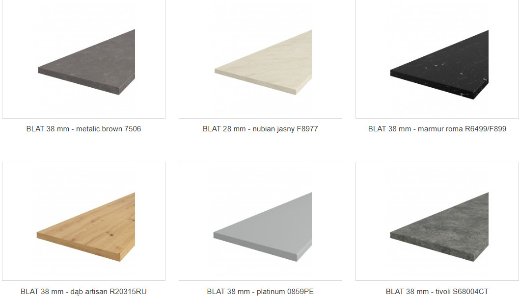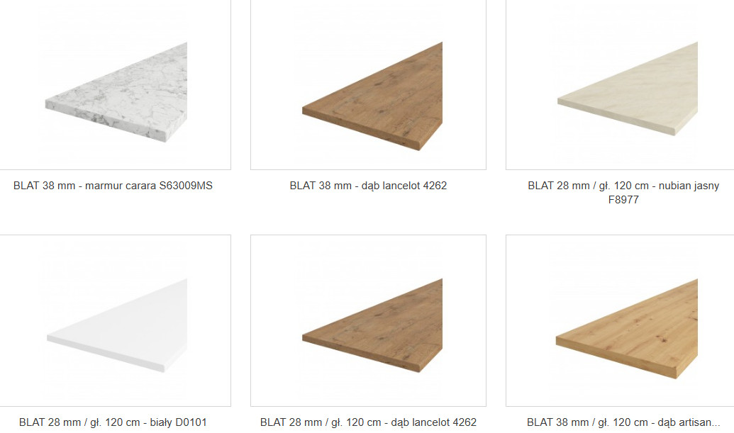 Cena podana jest bez blatu. Grubość blatu 28mm. kosztuje 198 złotych. Grubość blatu 38mm. kosztuje 238 zł.