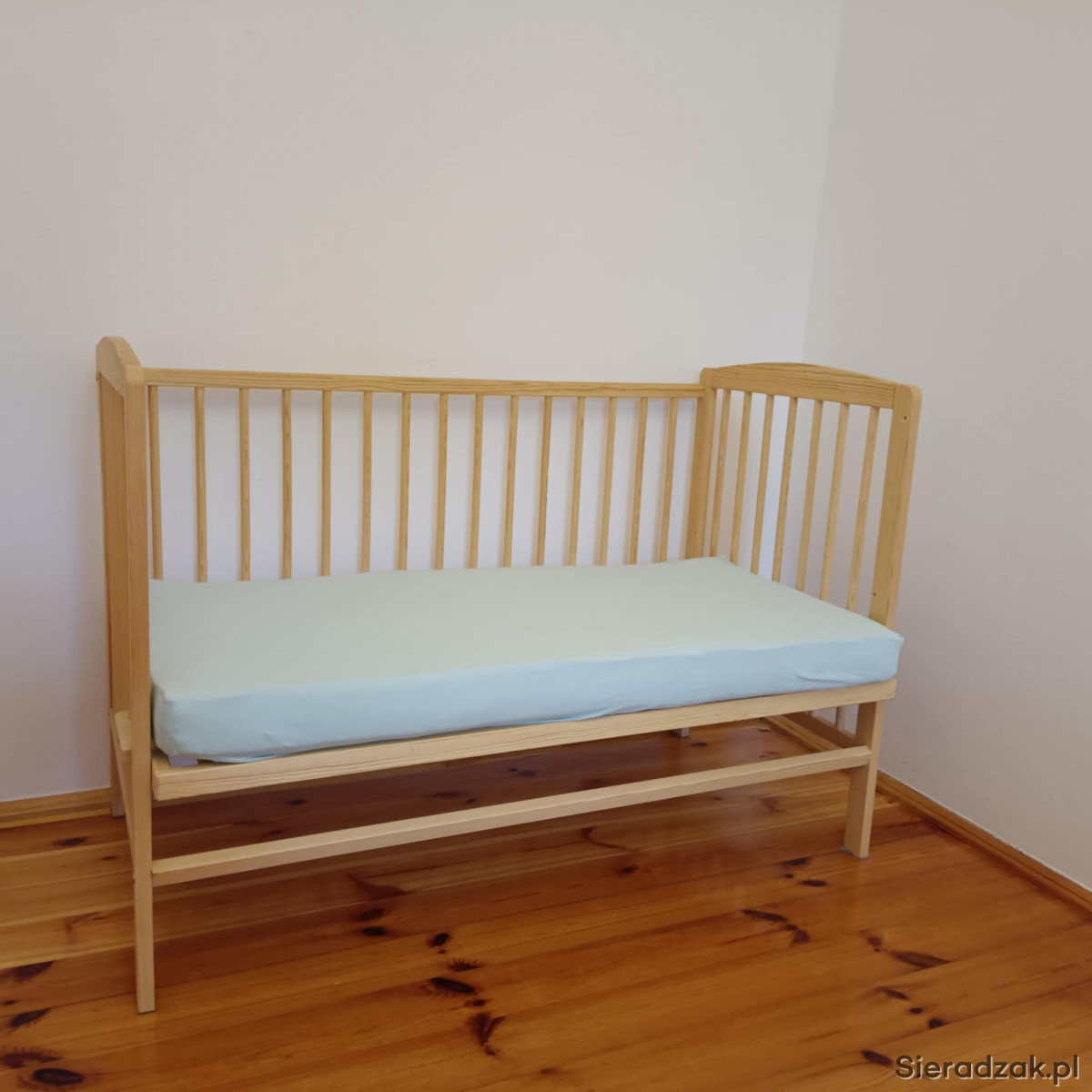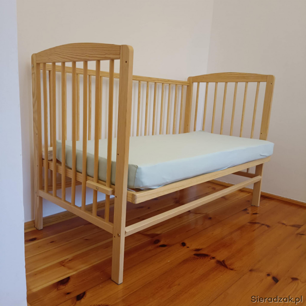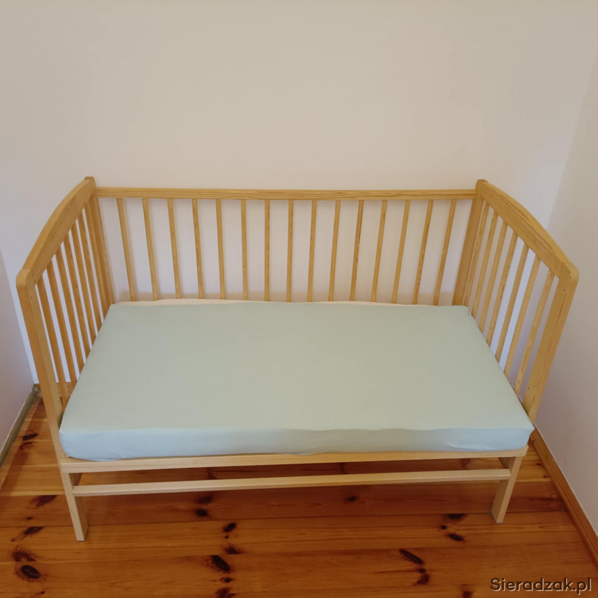 Łóżeczko drewniane dla dzieci 0-3 ze szczebelkami (ścianka z wyjmowanymi szczebelkami) oraz z funkcją dostawki i funkcją regulacji wysokości. Na zdjęciu jako dostawka, ale można zrobić z tego zamykane łóżeczko.