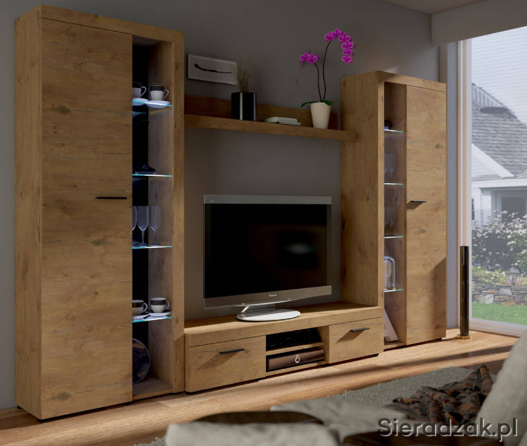 Meblościanka Rumba XL dąb lefkas fabryka Stolarz-Lempert.