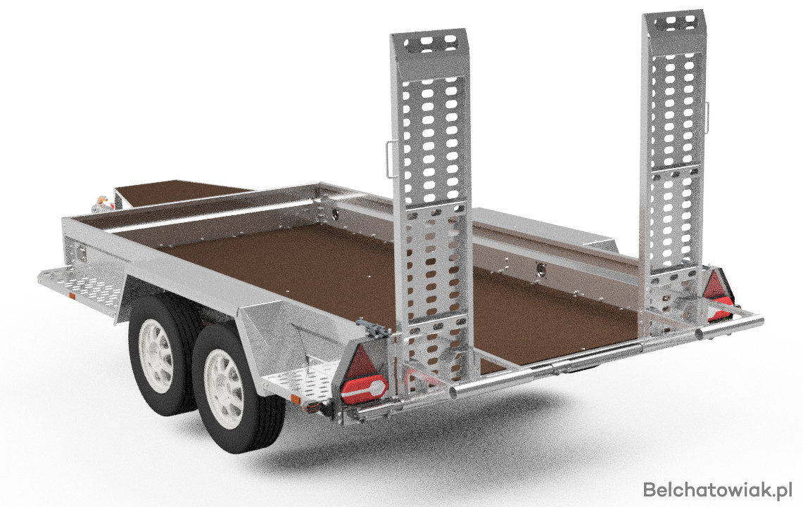 OŚ KNOTT lub SPP - długie podłużnice z bardzo mocnym dyszlem przykręcane na trzy punkty montażowe na wysokości osi, przyczepa jest ciągnięta za oś nie za ramę. Takie połączenie gwarantuje jeszcze większą stabilność i wytrzymałość przyczepy. Burty stalowe, walcowane na zimno bardzo mocne gwarantują większa sztywność i wytrzymałość – szerokość 30mm i wysokości 270mm.