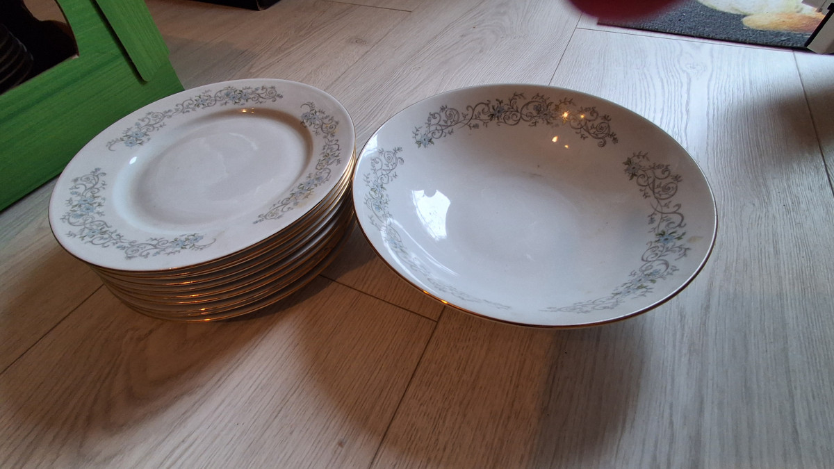 Sprzedam 10 zdobionych talerzy +półmisek
