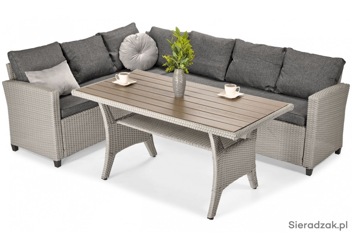 Narożnik ogrodowy z technorattanu SZTOKHOLM - szary SUPER CENA = DARMOWA DOSTAWA