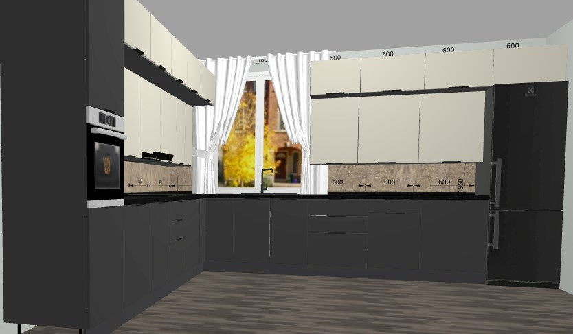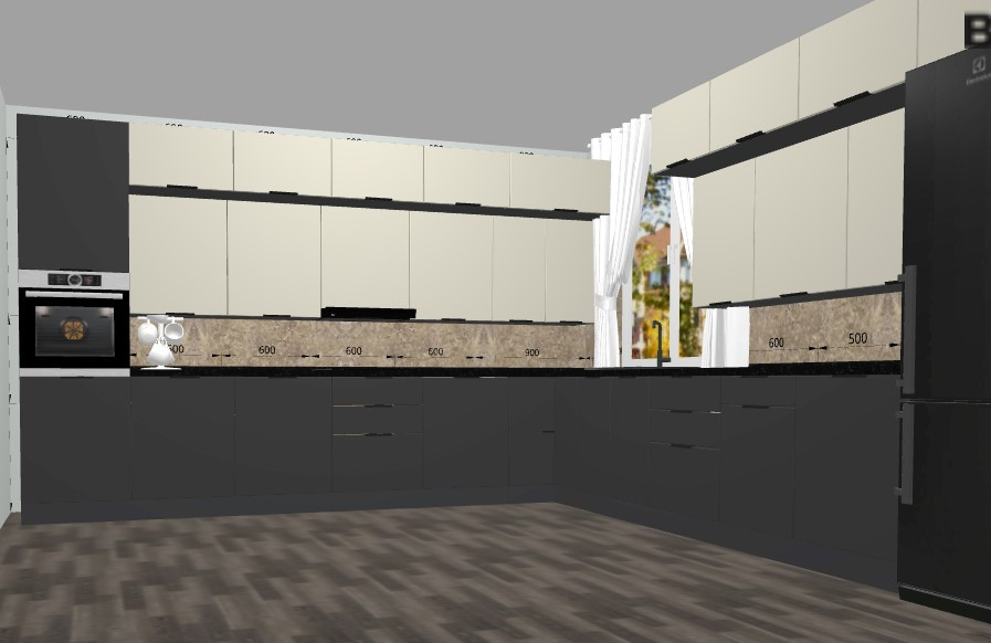 Projekty 3D o dowolnym stopniu skomplikowania, z oknami, drzwiami, z wymiarami pomieszczeń, z kolorem szafek, fasad, blatów, których potrzebujesz - jesteśmy w stanie odzwierciedlić wszystko w naszych projektach i zaoferować kuchnie Twoich marzeń w przystępnych cenach.