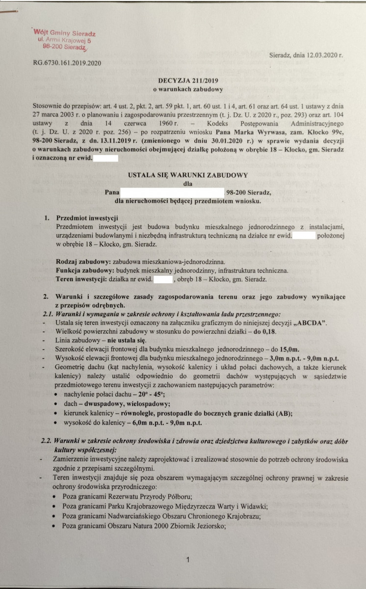 Warunki i wymagania dotyczące nowej zabudowy wynikające z decyzji o warunkach zabudowy: