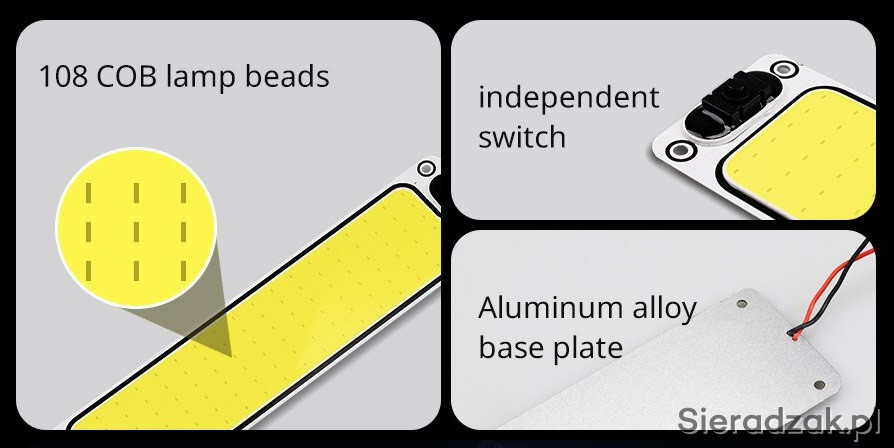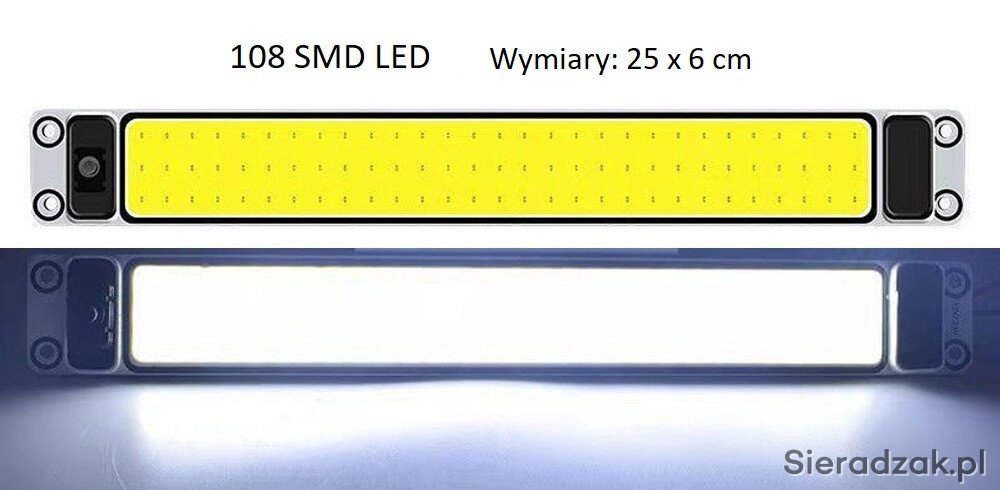 Oferowana lampka sufitowa posiada 108 diod Led i emituje silne białe światło o naturalnej barwie. Dedykowana jest do oświetlania większych powierzchni takich jak kamper, przyczepa kempingowa lub ciężarówki.