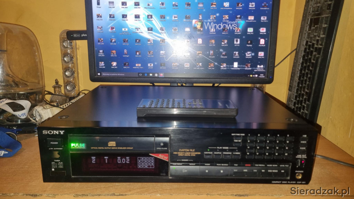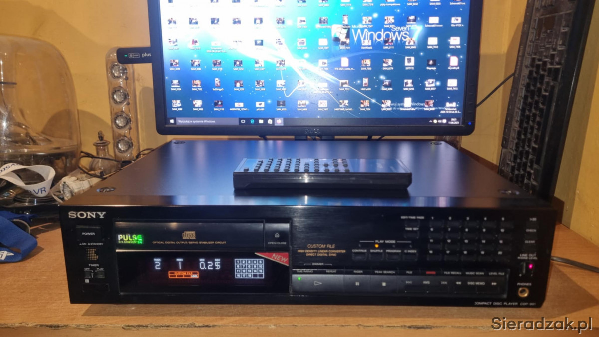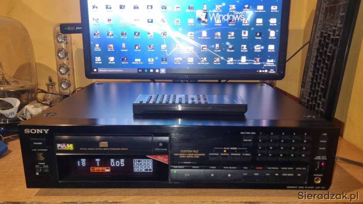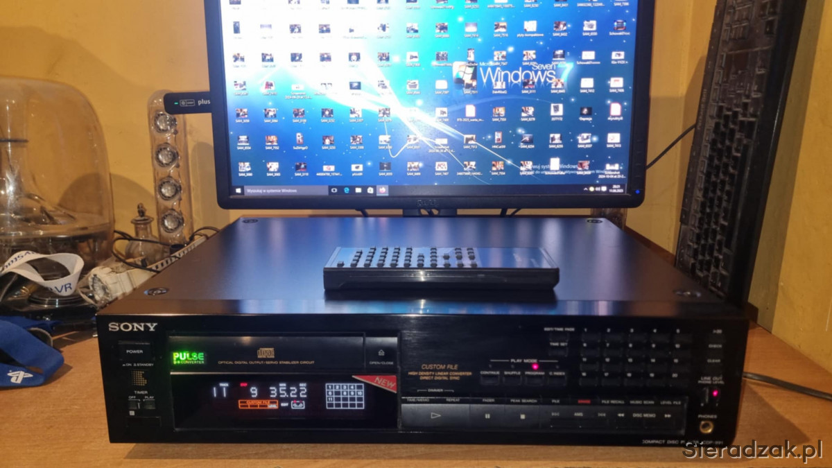 Odtwarzacz CD Sony CDP-991 TOPOWY MODEL z wyjściem cyfrowym optycznym i pilotem.
