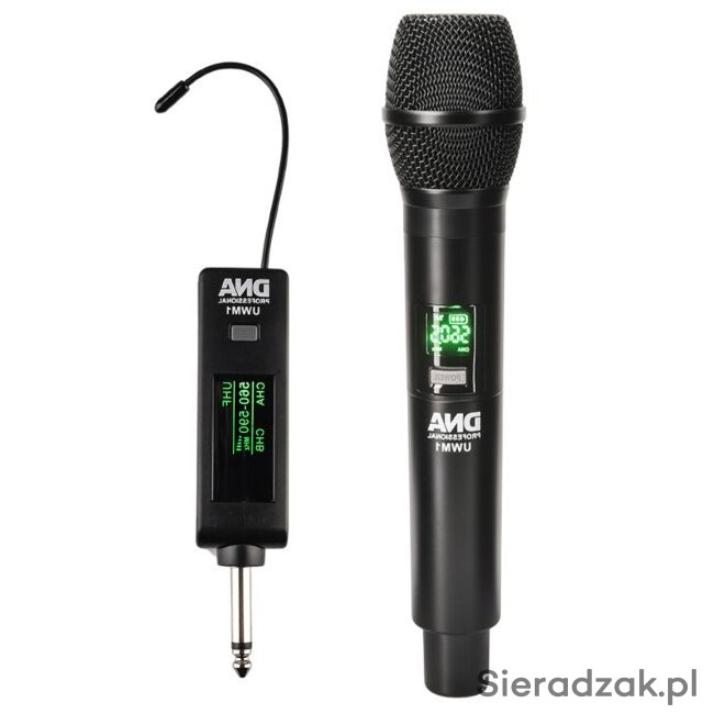 Zestaw bezprzewodowy do ręki mikrofon i odbiornik jack 6.3 do podłączenia z głośnikiem kolumną aktywną, mikserem audio wzmacniaczem. Nadaje się np. do głośników JBL itp.