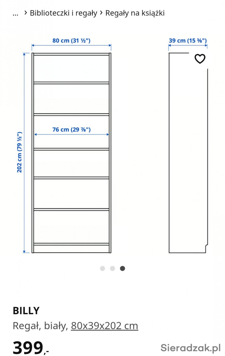 Sprzedam nowy, zapakowany regał Billy z Ikei zakupiony 08.06.2025r. wraz z fakturą. Kupiłam dwa, ale nastąpiła zmiana planów i potrzebuję tylko jedną sztukę. Wymiary na zdjęciach i w linku: BILLY regał, biały, 80x39x202 cm - IKEA share.google/ZOXdxpIdfF7hFkDSO