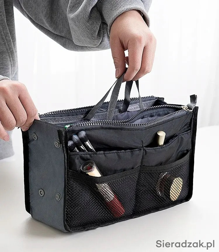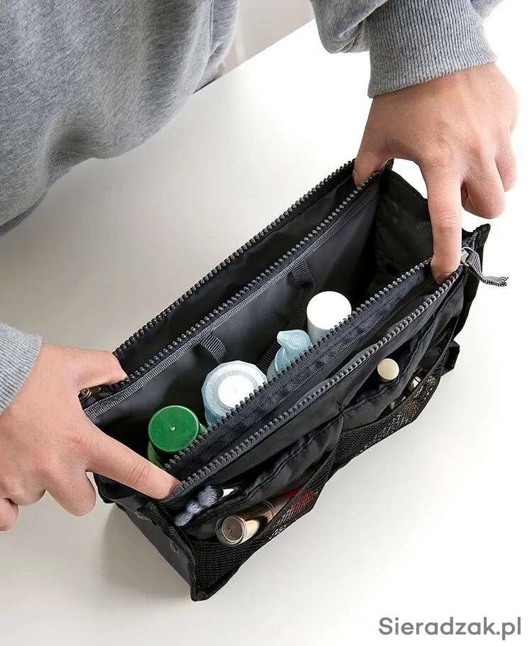 Ta niezwykła kosmetyczka pozwala w sposób uporządkowany i metodyczny spakować dziesiątki drobnych przedmiotów niezbędnych w podróży, delegacji, wycieczce itp.