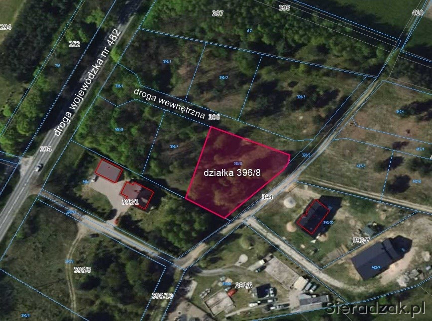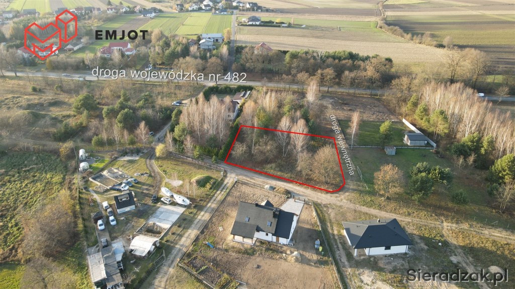 Działka znajduje się w urokliwej, cichej okolicy, idealnej dla osób, które cenią spokój i kontakt z naturą. Wokół znajduje się zabudowa jednorodzinna, a bliskość lasu stwarza świetne warunki do spacerów czy rekreacji na świeżym powietrzu. Ponadto działka znajduje się w dogodnym położeniu - 9 km od Sieradza.