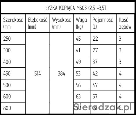 Łyżki kopiące do minikoparek 2,5–3,5T – szerokości od 25 cm do 80 cm | szybkozłącze MS08 | NOWE