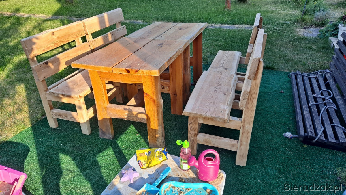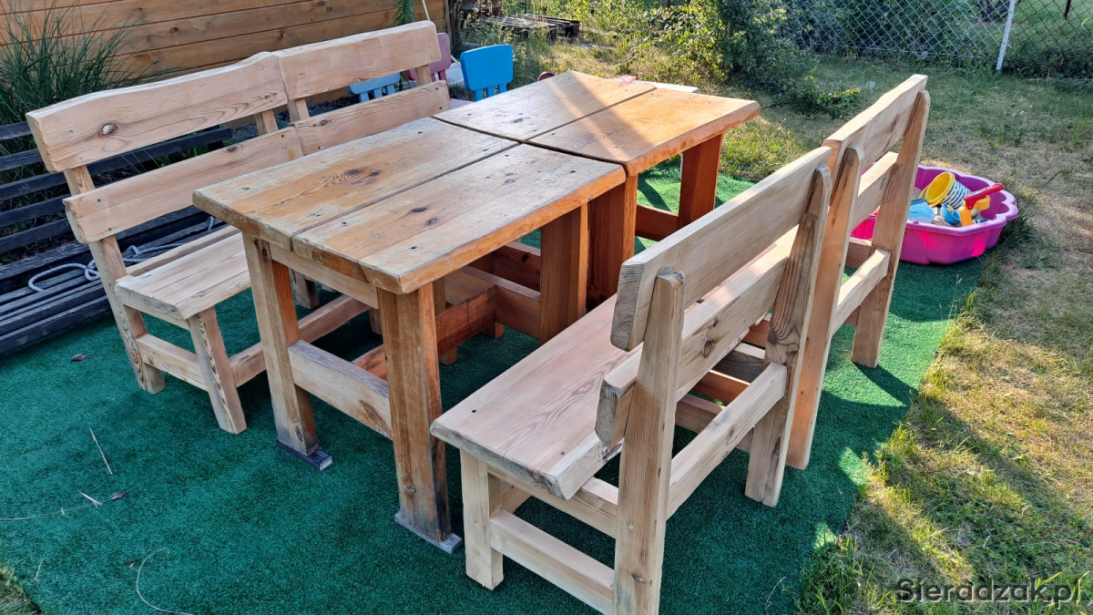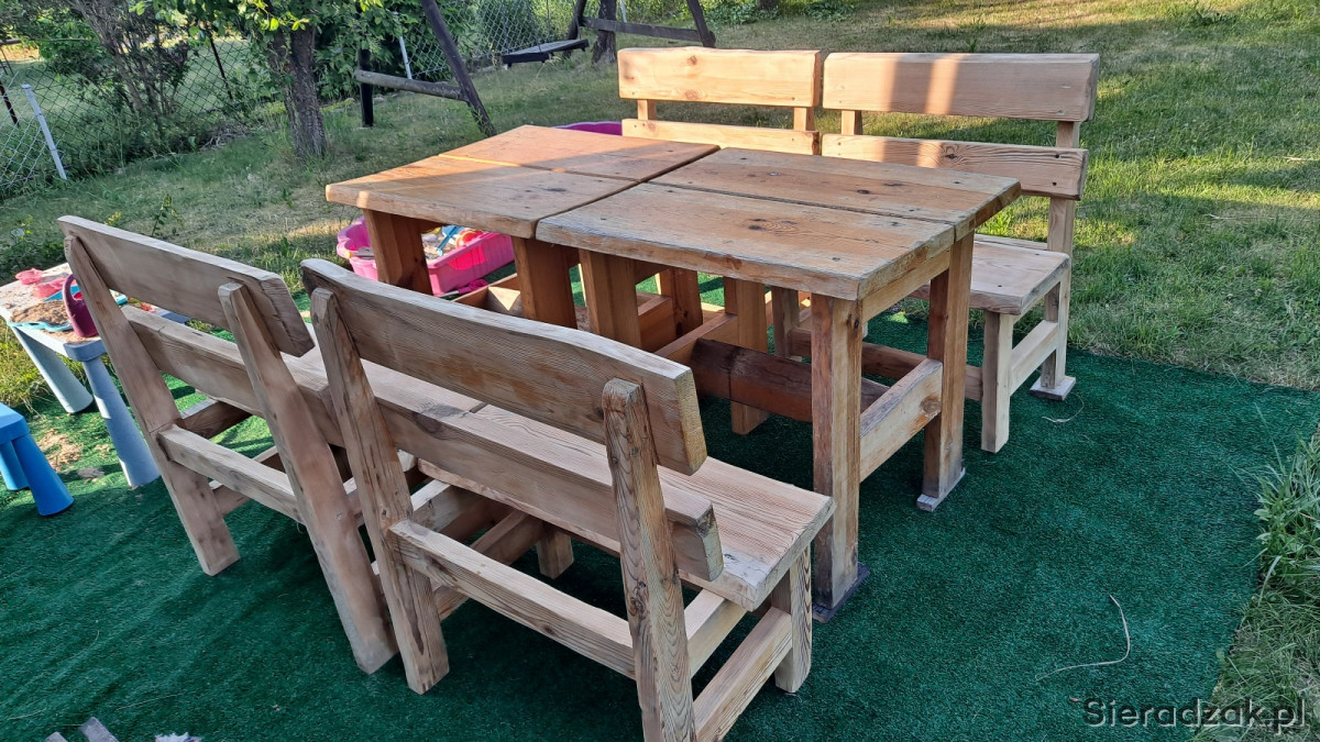 Sprzedam 2 stoły ogrodowe i 4 ławki gruba porządna deska , można je rozsunąc i układac jak sie chce ławki oszlifowane przygotowane do mowania na jak kolor chcecie, fajne pod altanke
