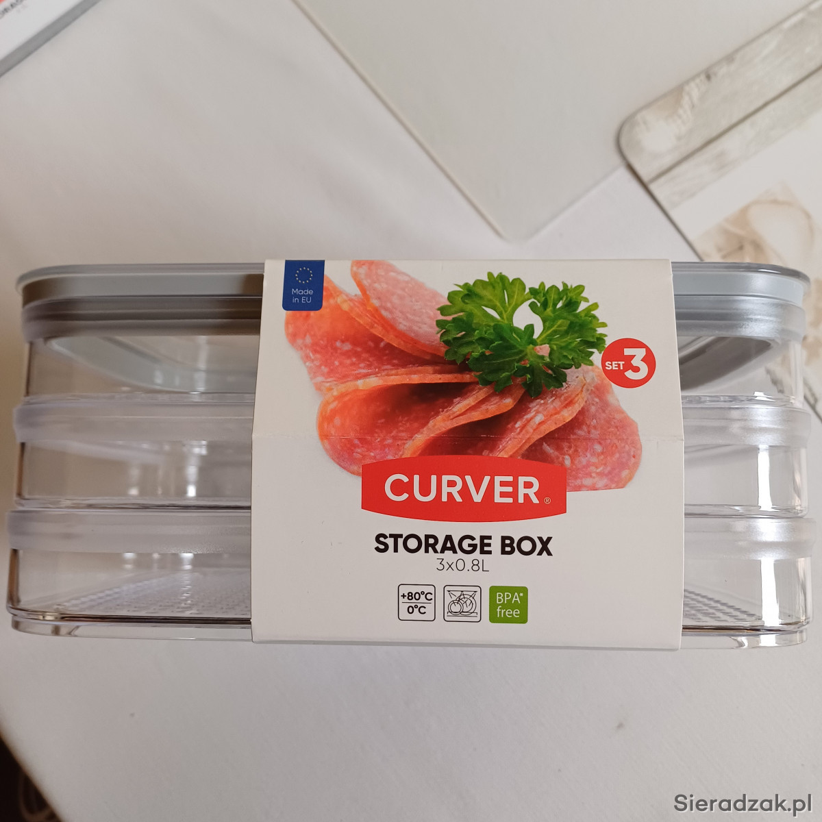 Pudełko do przechowywania 3 w 1 świetnie nadaje się np. do hermetycznie szczelnego przechowywania mięsa lub plasterków sera w lodówce. Pozwoli to na przechowywanie artykułów spożywczych w sposób bezpieczny i zabezpieczy zawartość pudełka przed wilgocią dzięki wysokiej jakości uszczelce w pokrywce.