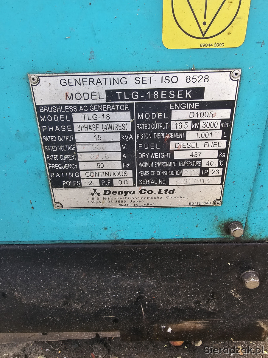 Agregat prądotwórczy Denyo. 3 fazowy moc 16.5 kw . Silnik kubota .