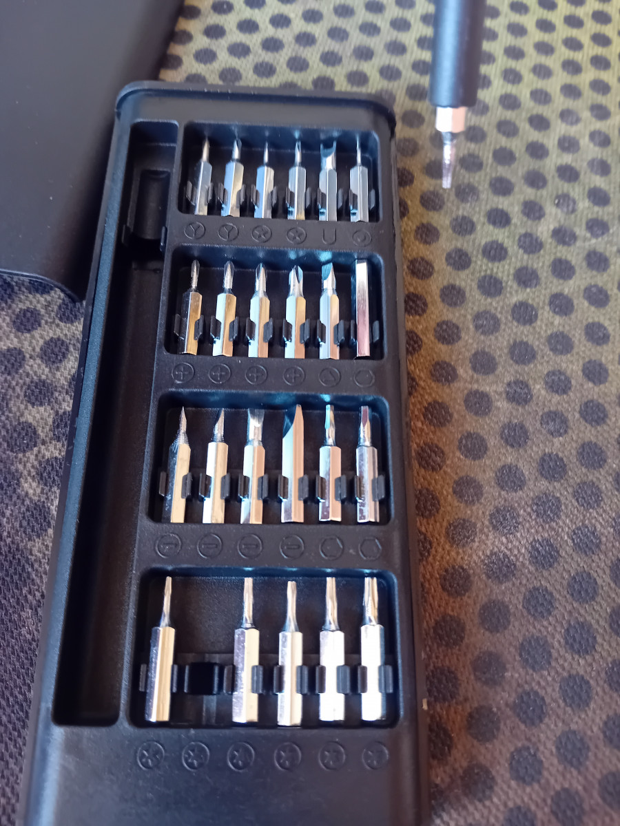 Zestaw 25 małych bitów do naprawy np. Telefonow czy innych urzadzen elektrycznych widoczny na zdjęciach.