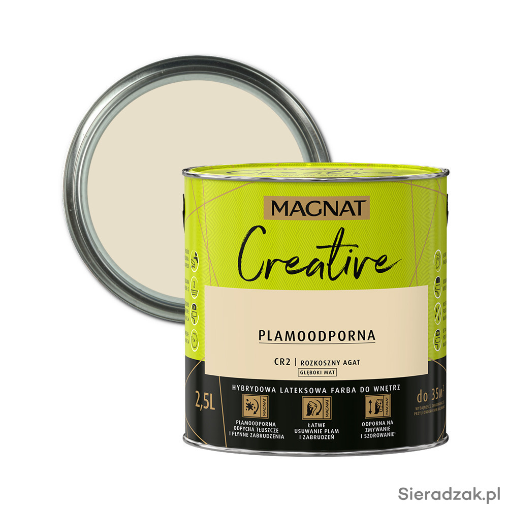 MAGNAT CREATIVE to farba hybrydowa, łącząca ze sobą dwie właściwości: odporność na płynne zabrudzenia (hydrofobowość ) oraz