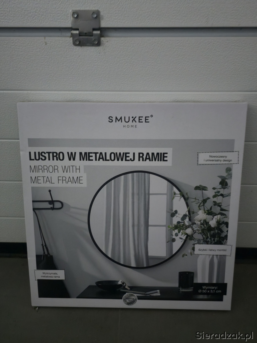 Całkowicie nowe nie otwierane Okrągłe Lustro w metalowej ramie Smukee 50cm.