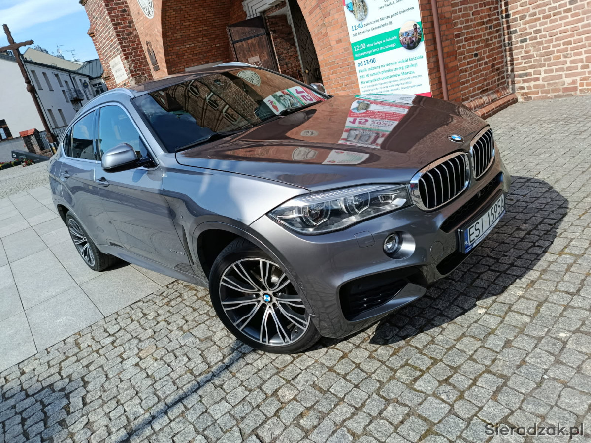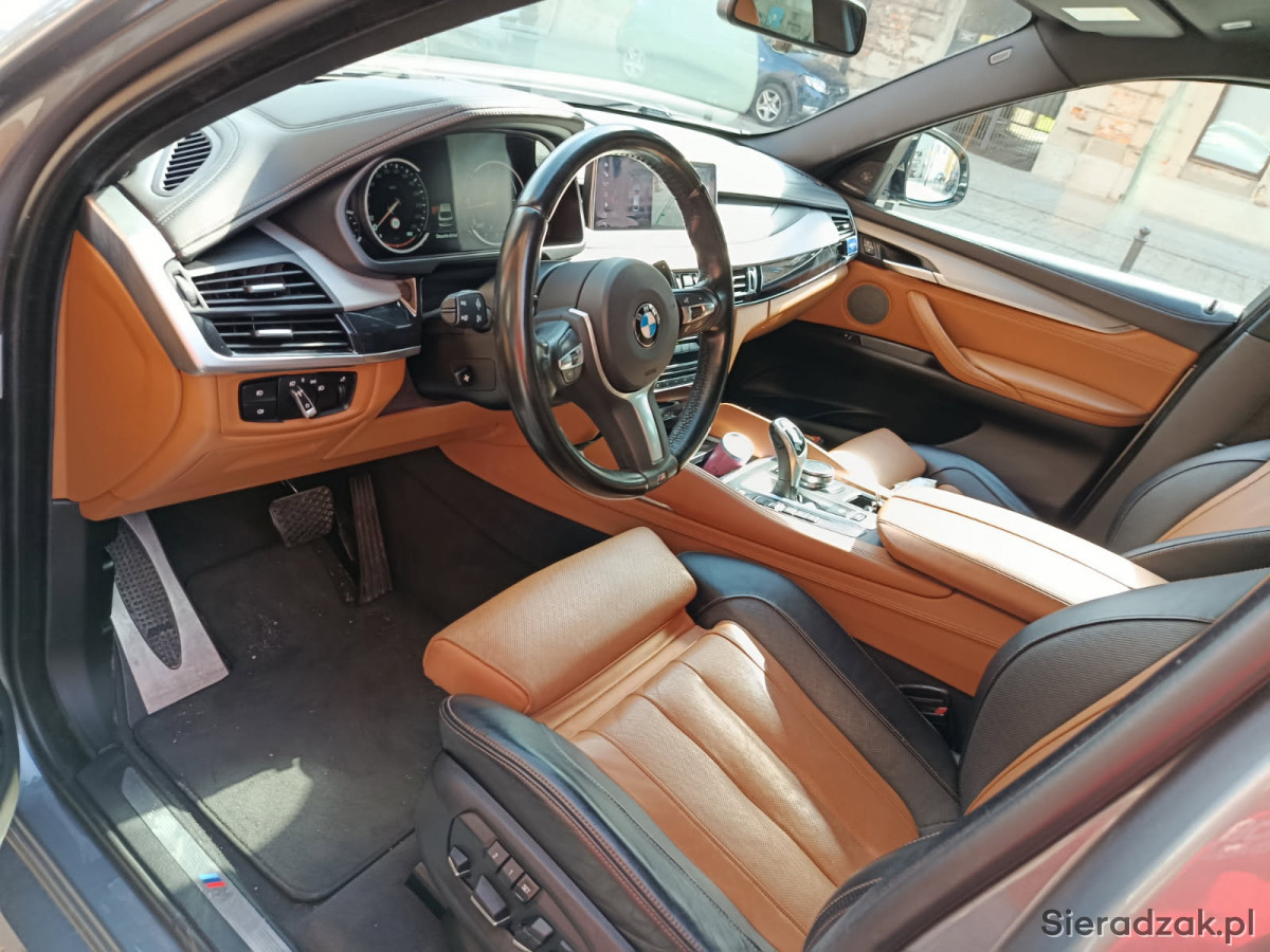 Oferuję wynajem luksusowego BMW X6 w kolorze grafitowym, z eleganckim wnętrzem wykończonym rudą skórą.