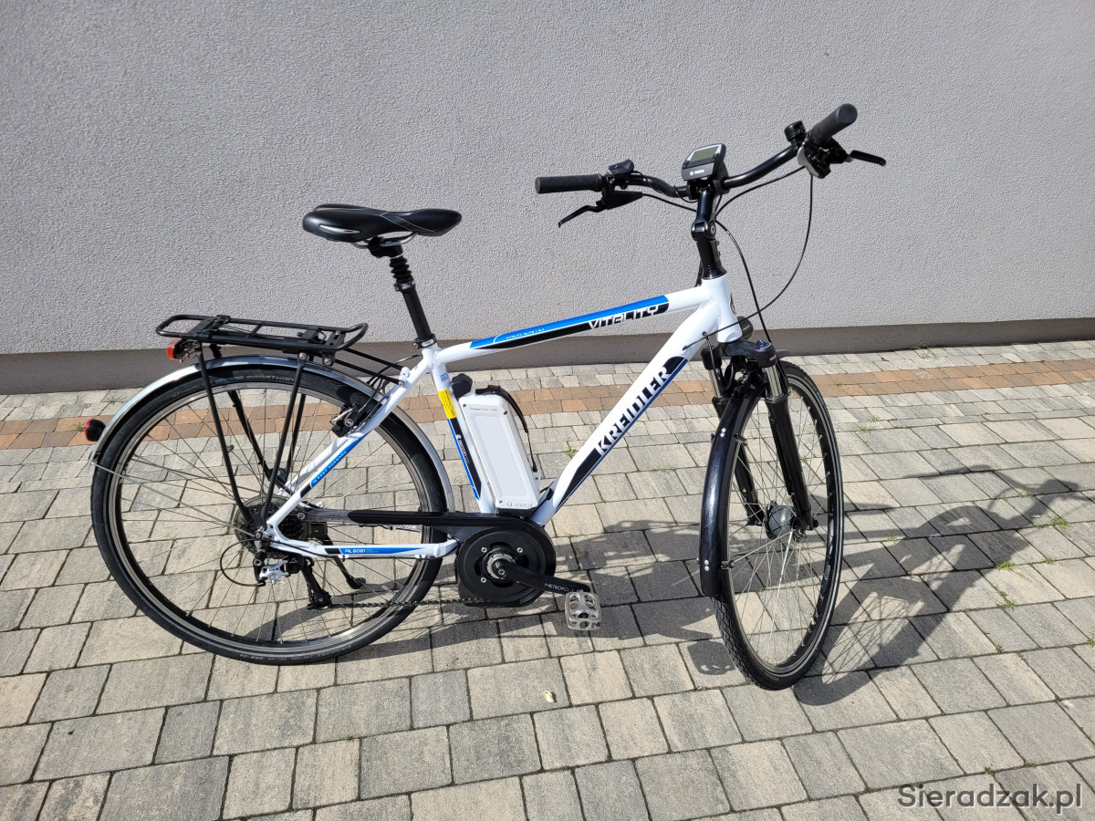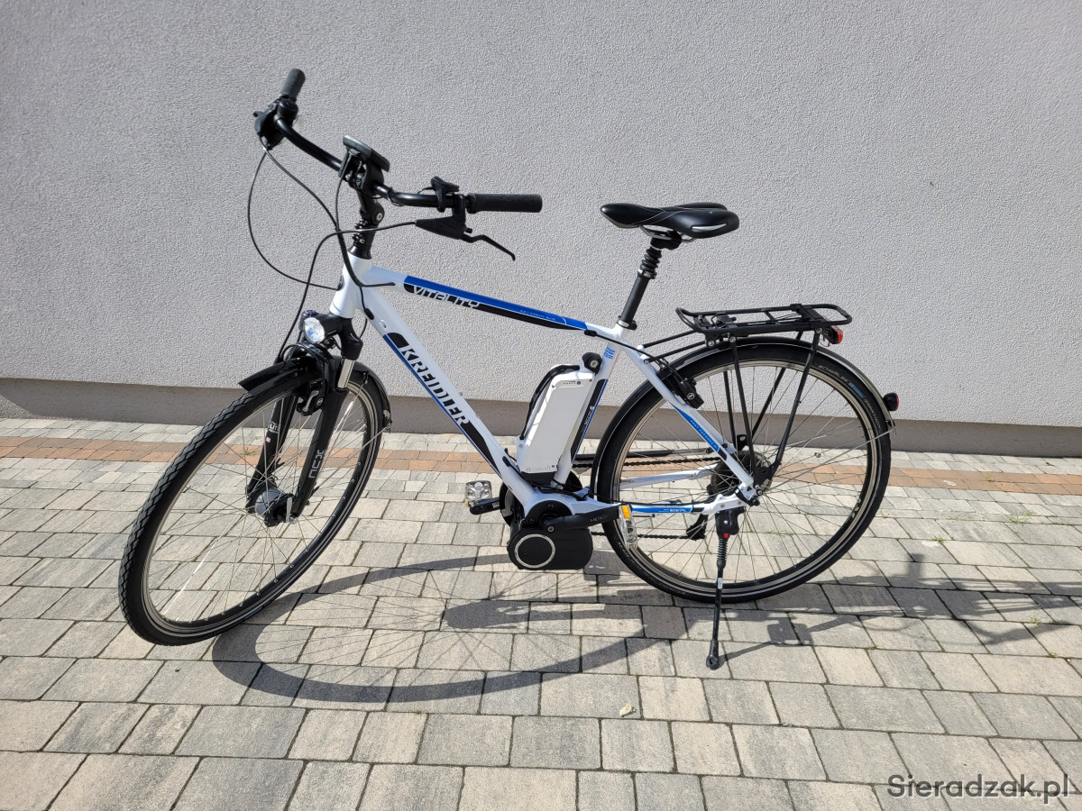 Witam mam do sprzedania rower Elektryczny Kreidler Vitality na kołach 28' z silnikiem i baterią Bosch wolne/szybkie ładowanie, przerzutki Schmiano (9), hamulce Magura HS 11, dynamo w piaście Schimano, siodełko teleskopowe, orginalna pompka w zestawie. Więcej inf. pod nr. tel. 507-216-488