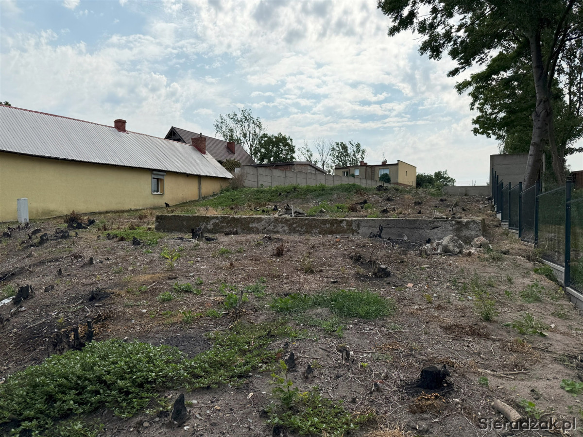 Działka ogrodzona płotem betonowym oraz siatką w panelach.
