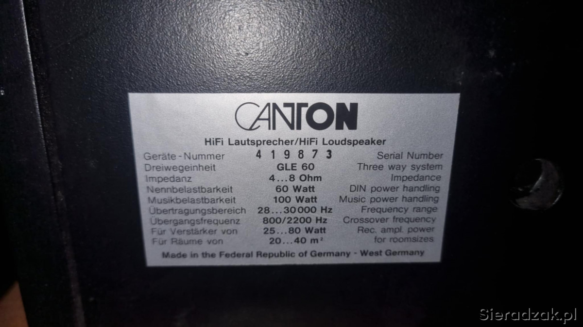Kolumny monitory Canton GLE-60 2x100W 4ohm 3-drożne Made in Germany Vintage!!!