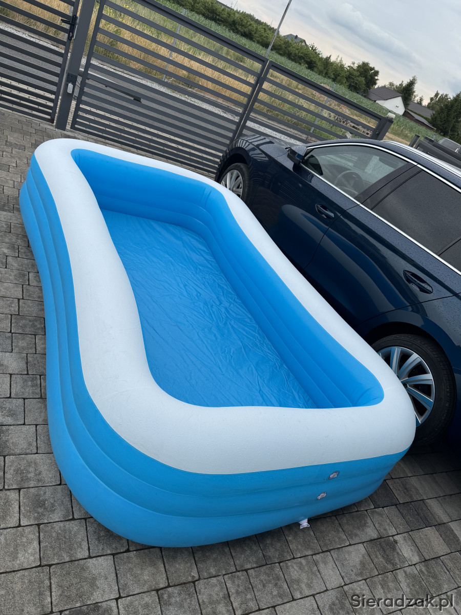 w zestawie basen, podkład pod basen, pompka do pompowania basenu