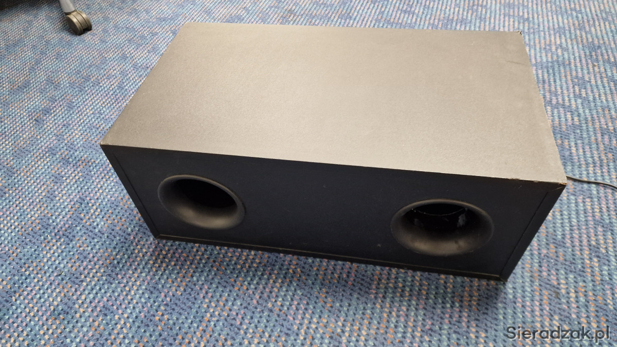 Używany subwoofer aktywny. Świeżo po przeglądzie. Wymienione zawieszenia membran, sprawdzony pod względem elektrycznym. Ślady używania na obudowie.