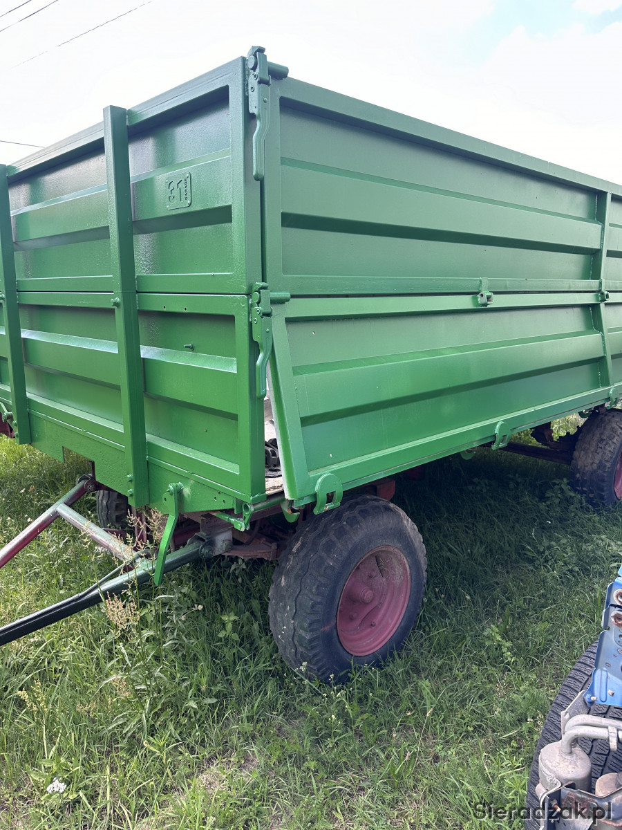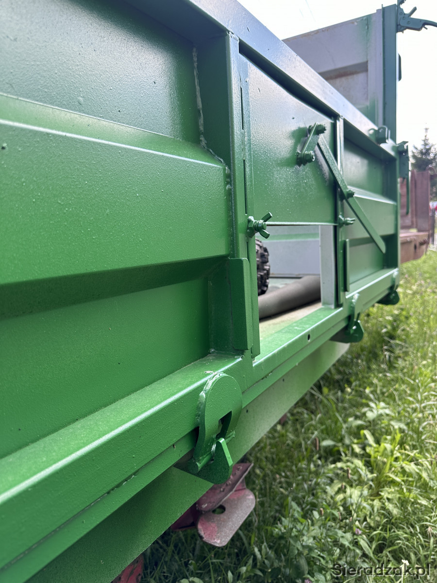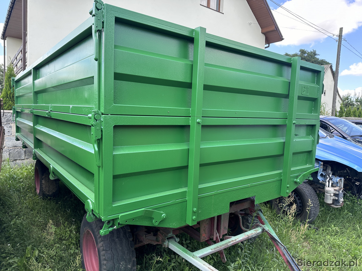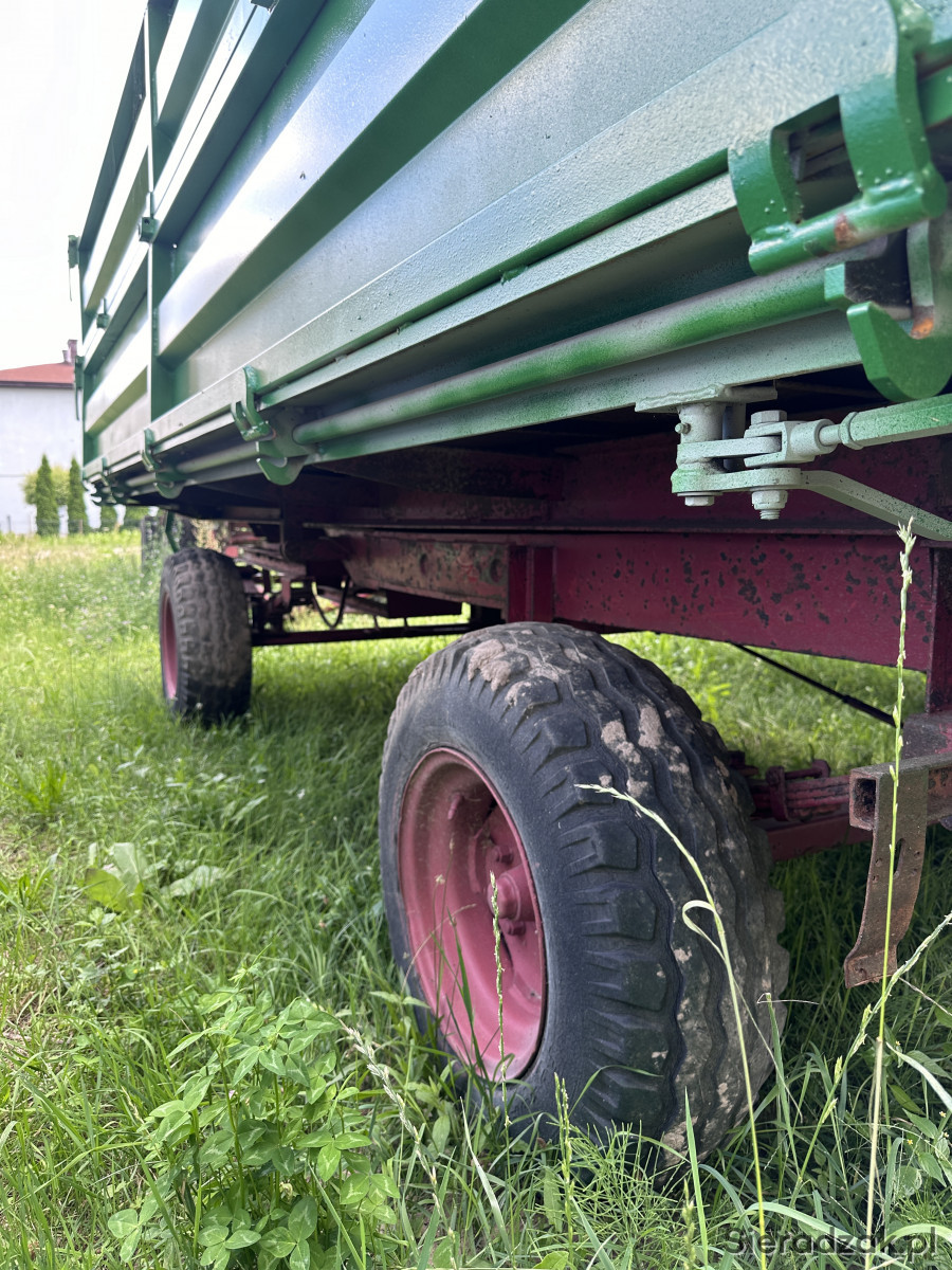 Przyczepa wywrotka niemiecka Peitz o ładowności 6T, cała górna zabudowa nowa, zamki pronar, burty uchylane dołem wszystkie, zsyp zboża w tylnej burcie, trójkąty pod plandeke. Założone nowe opony 11.5/15.3.