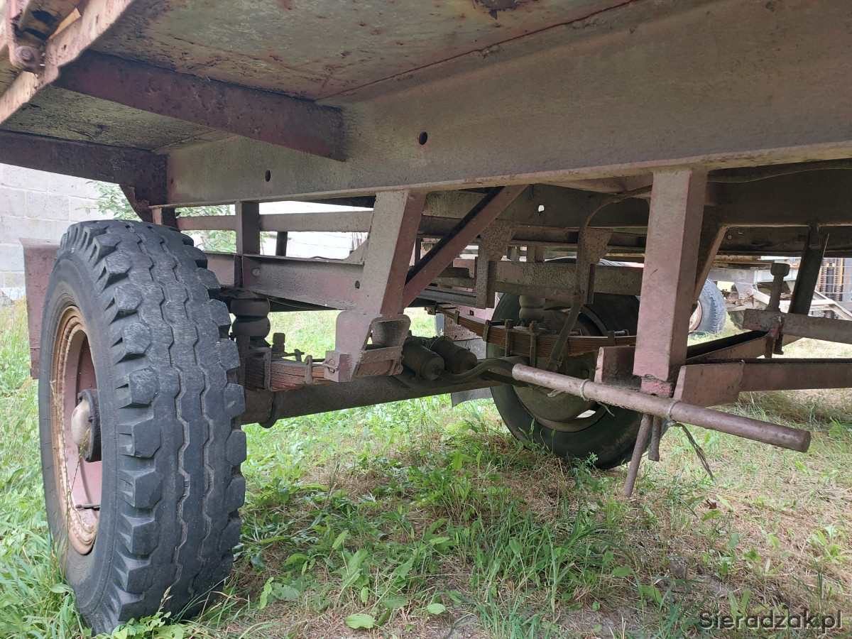 Przyczepa rolnicza Autosan D50 zarejestrowana sztywna aktualne Oc brak przeglądu burty Ok rama w bdb stanie resory niepopekane podłoga Ok do przyczepy wstawiony tylny wzmocniony zaczep pneumatyka kompletna. Jest to nowszy model przyczepy z piastami wewnątrz felgi