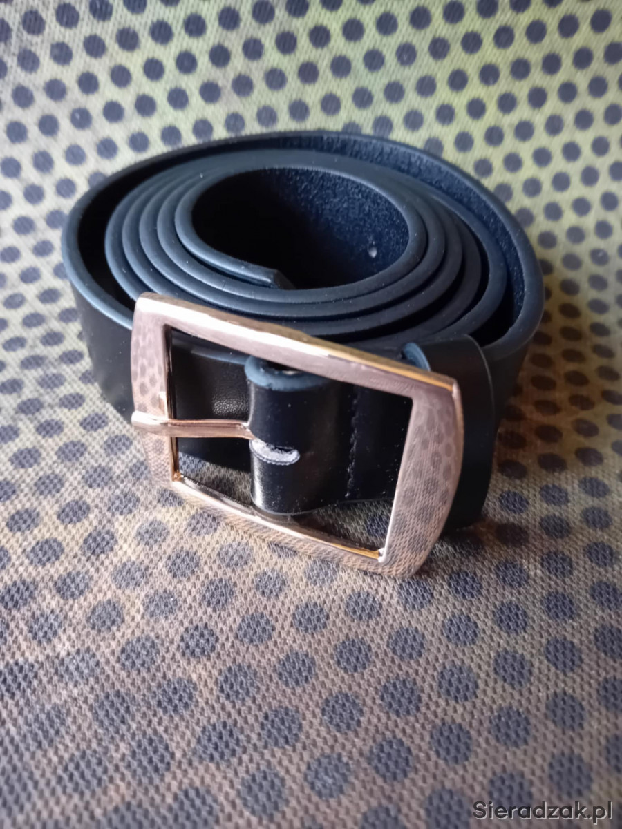 Czarny NOWY pasek ze skóry z mikrofibry o długości ok. 127cm.