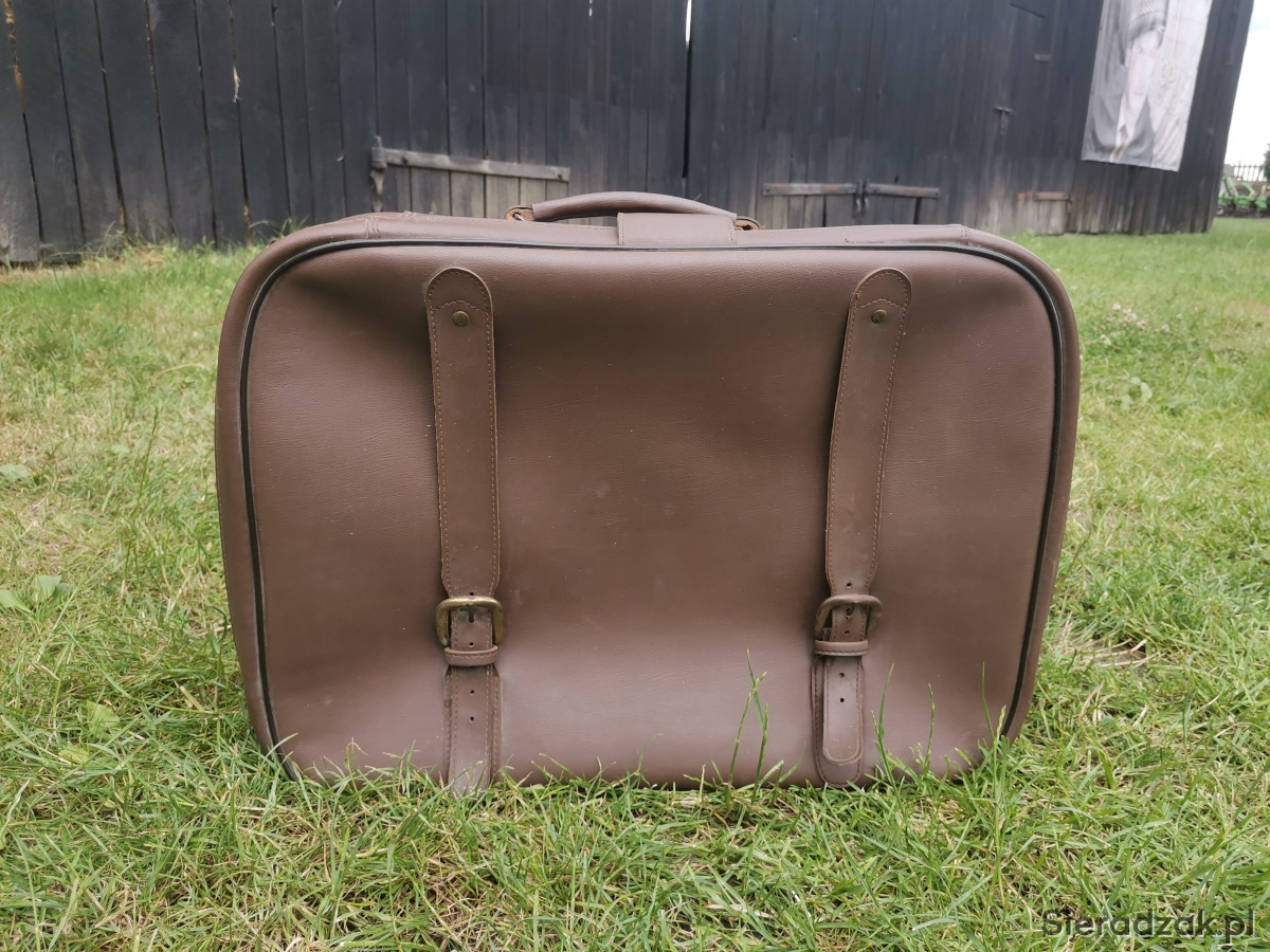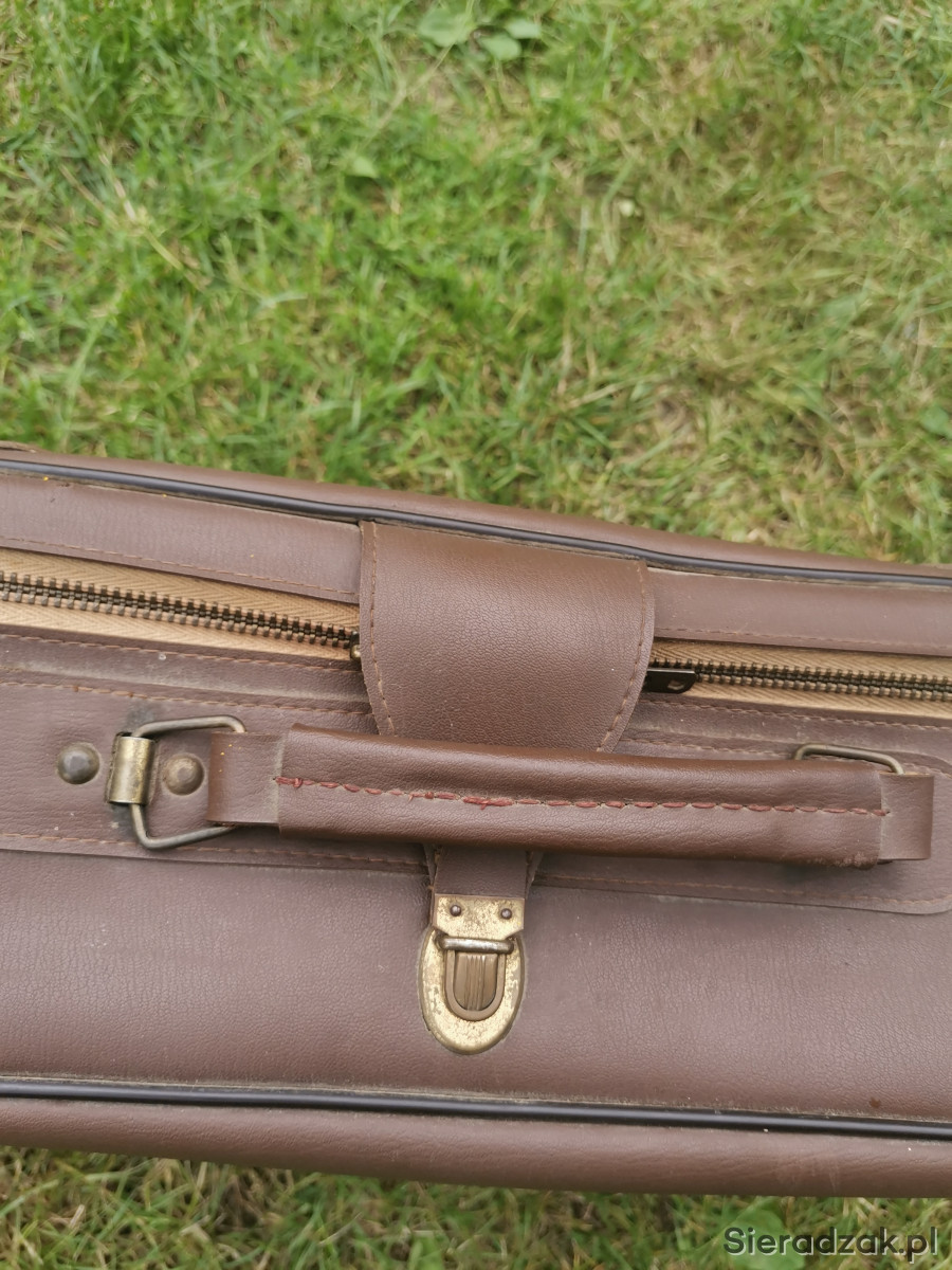 Walizka PRL brązowa antyk skórzana do zdjęć rekwizyt