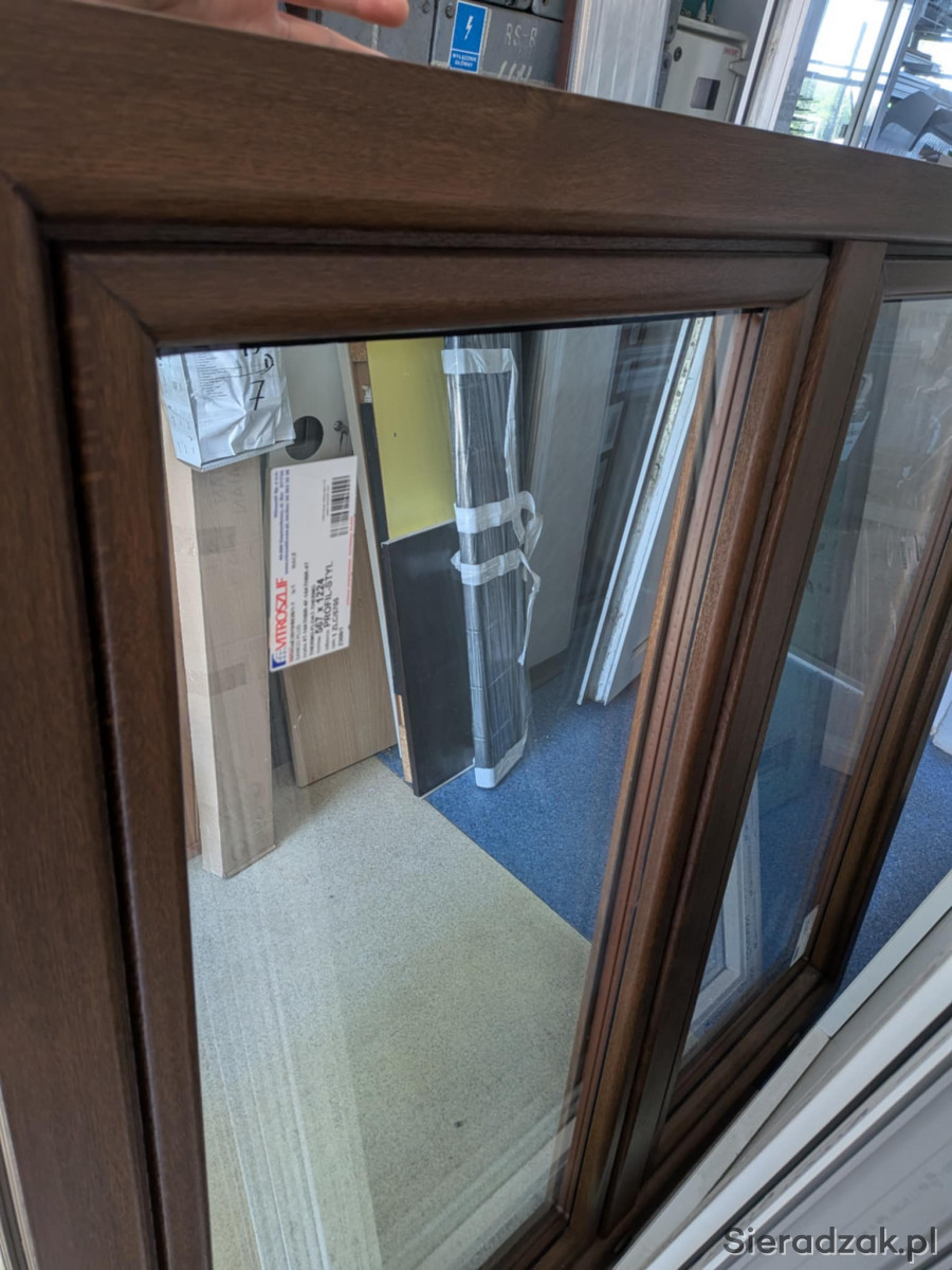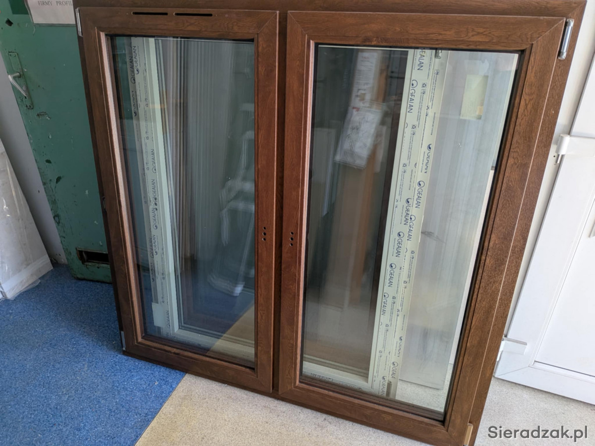 Na sprzedaż okno PCV dwuskrzydłowe w kolorze orzech z wystawki w biurze