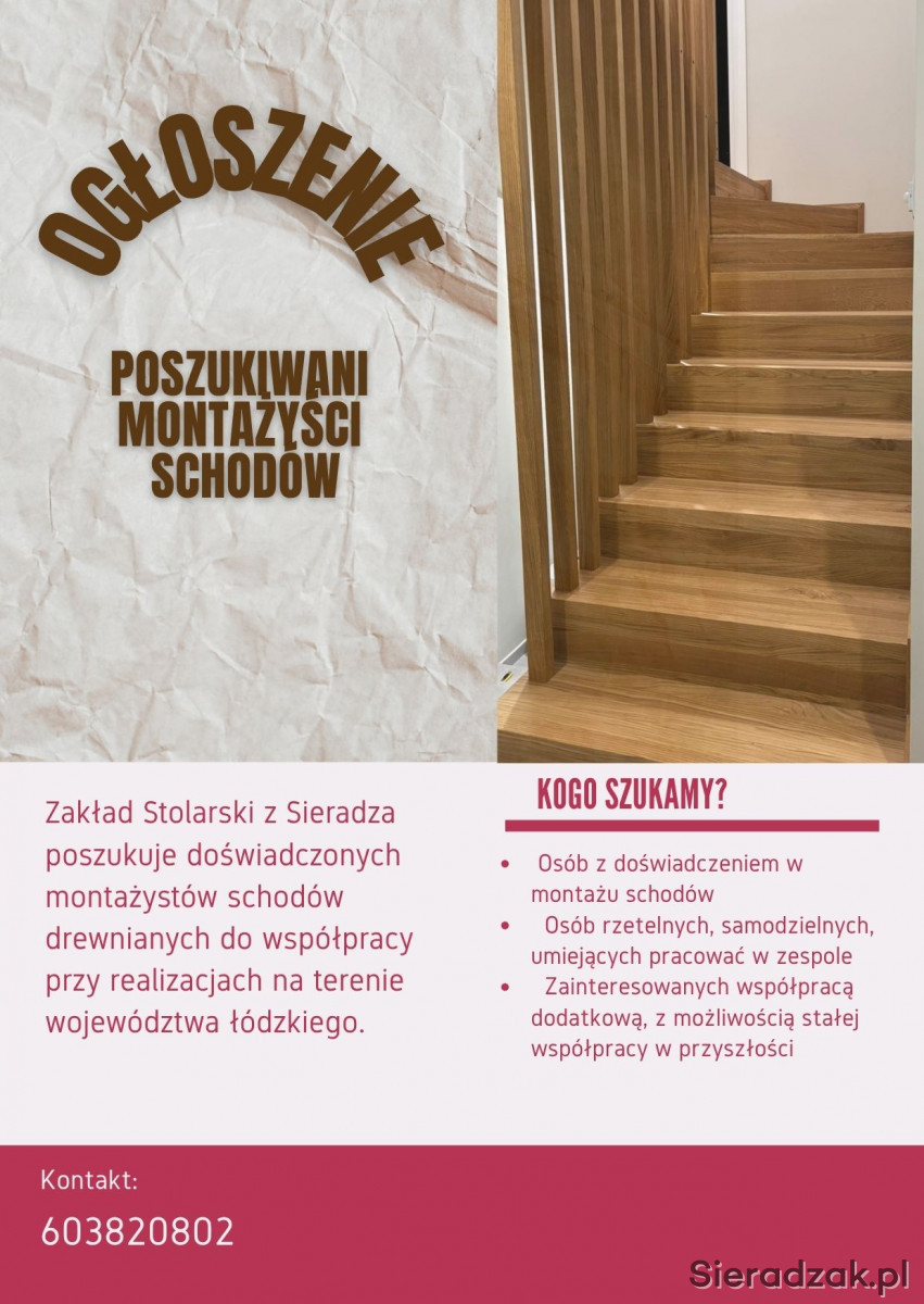 OGŁOSZENIE – SZUKAMY MONTAŻYSTÓW SCHODÓW