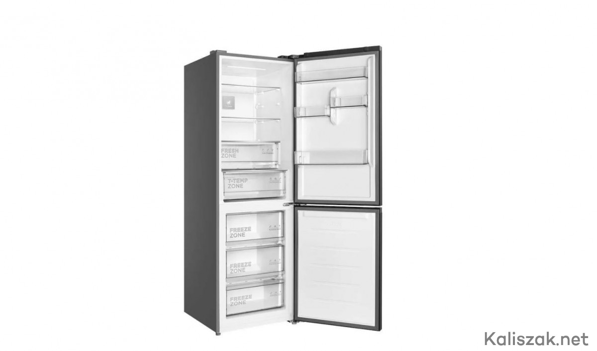 Na sprzedaż lodówka wolnostojąca TCL RP340BSD0 w eleganckim kolorze Quartz Gray. Wysokość 185 cm, pojemność całkowita 340 l (chłodziarka 223 l + zamrażarka 117 l), nowoczesny design i pełny system No Frost eliminujący konieczność rozmrażania.