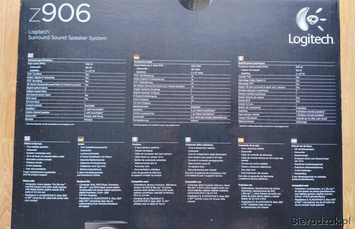 Sprzedam zestaw głośników Logitech Z-906, który posiadam od nowości. Sprzęt był bardzo mało używany i jest w doskonałym stanie technicznym i wizualnym. Dźwięk jest czysty i mocny, a głośniki idealnie nadają się do oglądania filmów, grania w gry, jak i słuchania muzyki.