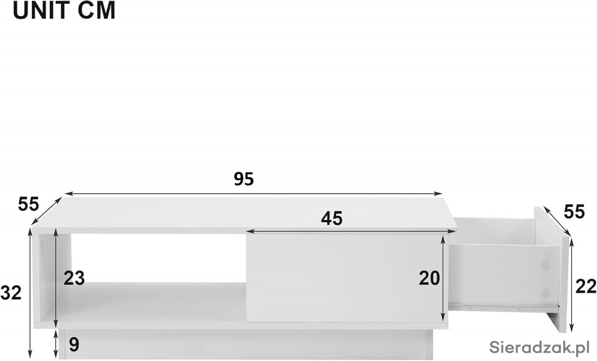- Dolna półka (dł. x szer. x wys.): 47 x 55 x 21 cm