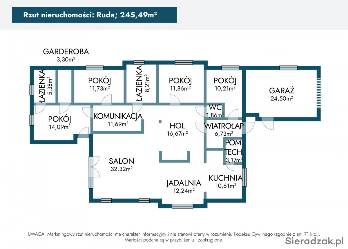 Na sprzedaż parterowy dom z 2023 roku o powierzchni użytkowej 245,49 m², położony na ogromnej działce 12 200 m² w malowniczej Rudzie – tylko kilka minut od Sieradza!