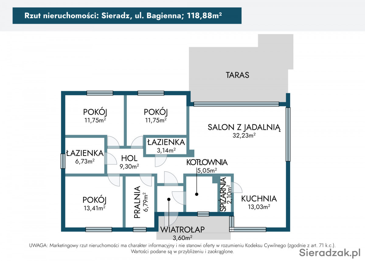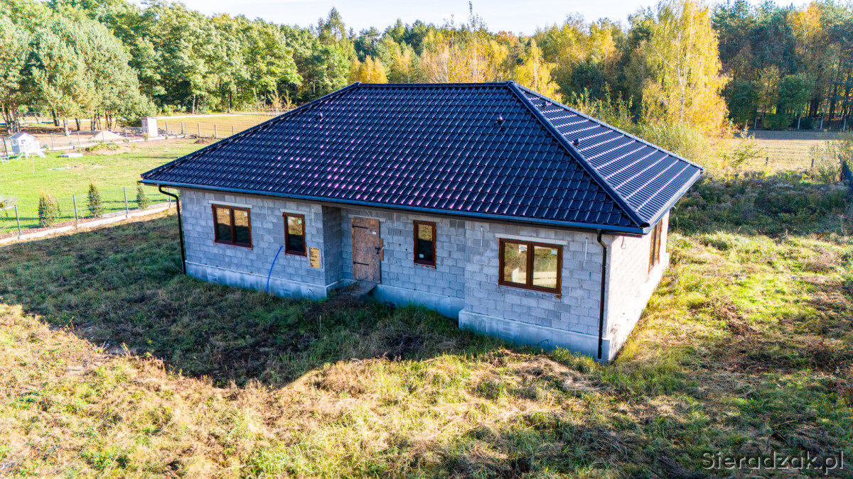 Z przyjemnością oferuję na sprzedaż dom w stanie surowym zamkniętym o powierzchni całkowitej 153,51 m², wyposażony w nowoczesną pompę ciepła! Powierzchnia użytkowa to 118,88 m². Nieruchomość położona jest w Sieradzu, przy ul. Bagiennej, na nowo powstałym osiedlu domów jednorodzinnych.