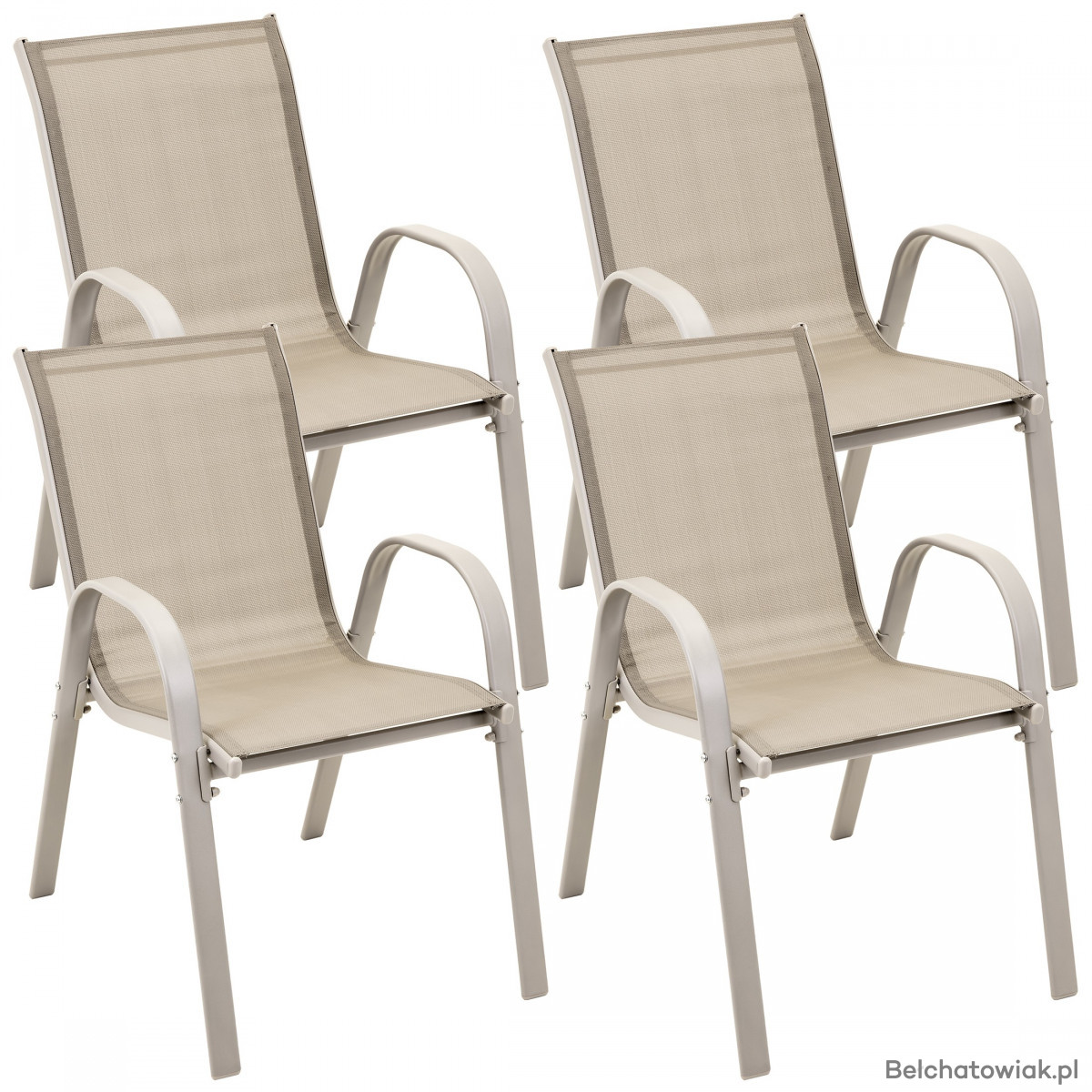 Stwórz komfortową i stylową przestrzeń wypoczynkową na świeżym powietrzu dzięki zestawowi czterech krzeseł ogrodowych. To idealne rozwiązanie na balkon, taras, patio czy do ogrodu – zarówno w Polsce, jak i za granicą.
