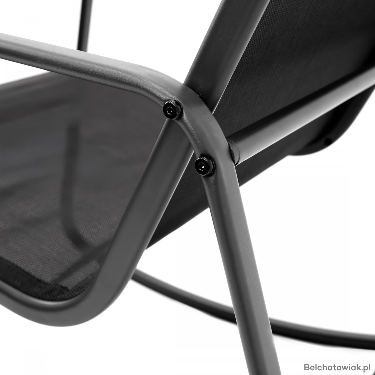 Zestaw mebli ogrodowych 57860 to stylowe i praktyczne rozwiązanie dla wszystkich, którzy chcą stworzyć wygodną strefę wypoczynku na tarasie, balkonie, patio czy w ogrodzie. Komplet składa się z dwóch bujanych foteli wykonanych z trwałej siatki textilene oraz eleganckiego stolika z blatem ze szkła hartowanego.