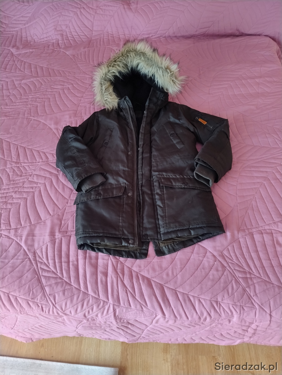 Sprzedam używaną kurtkę parka dla chłopca kolor ciemna zieleń rozm. 128 cm. Kupiona w Smyku.