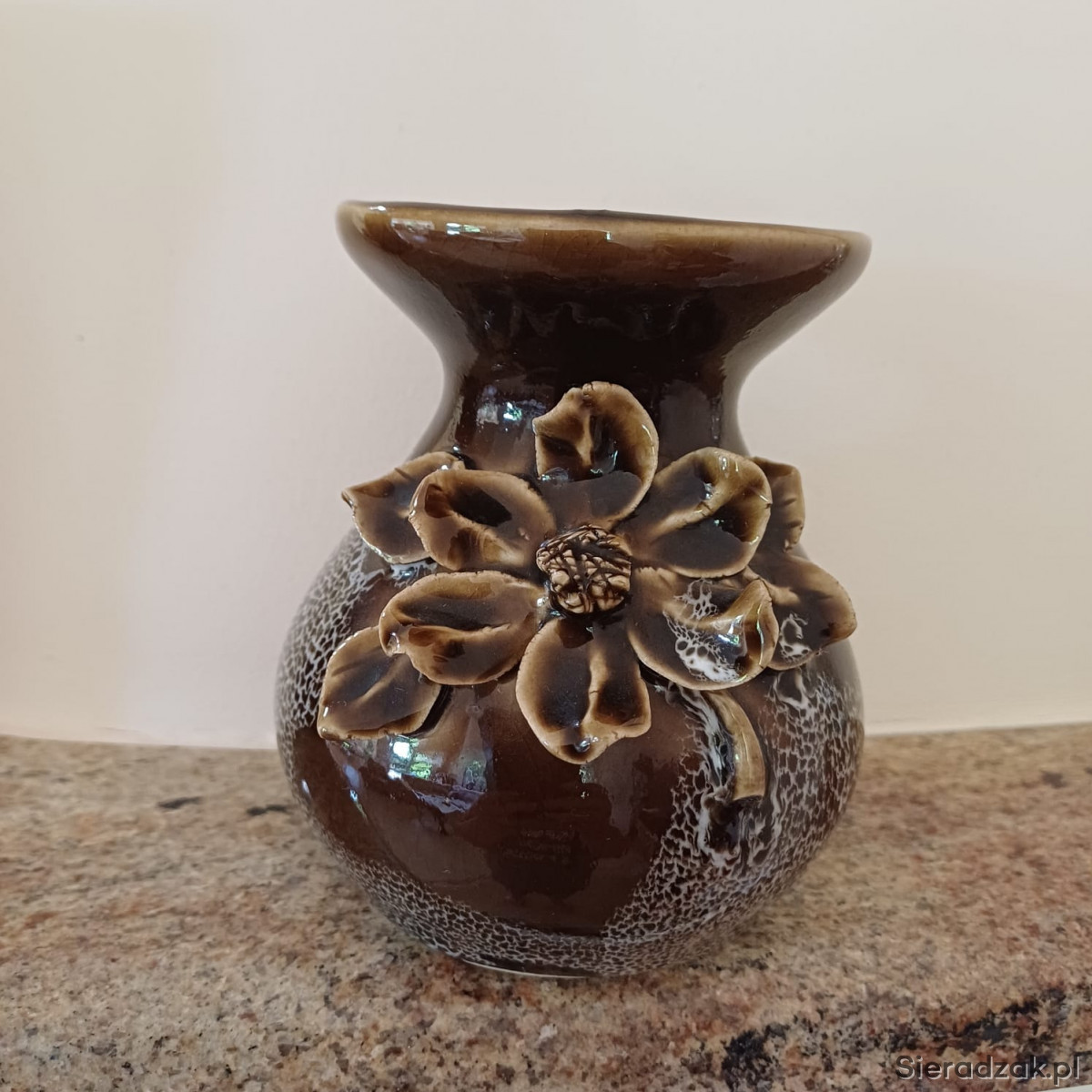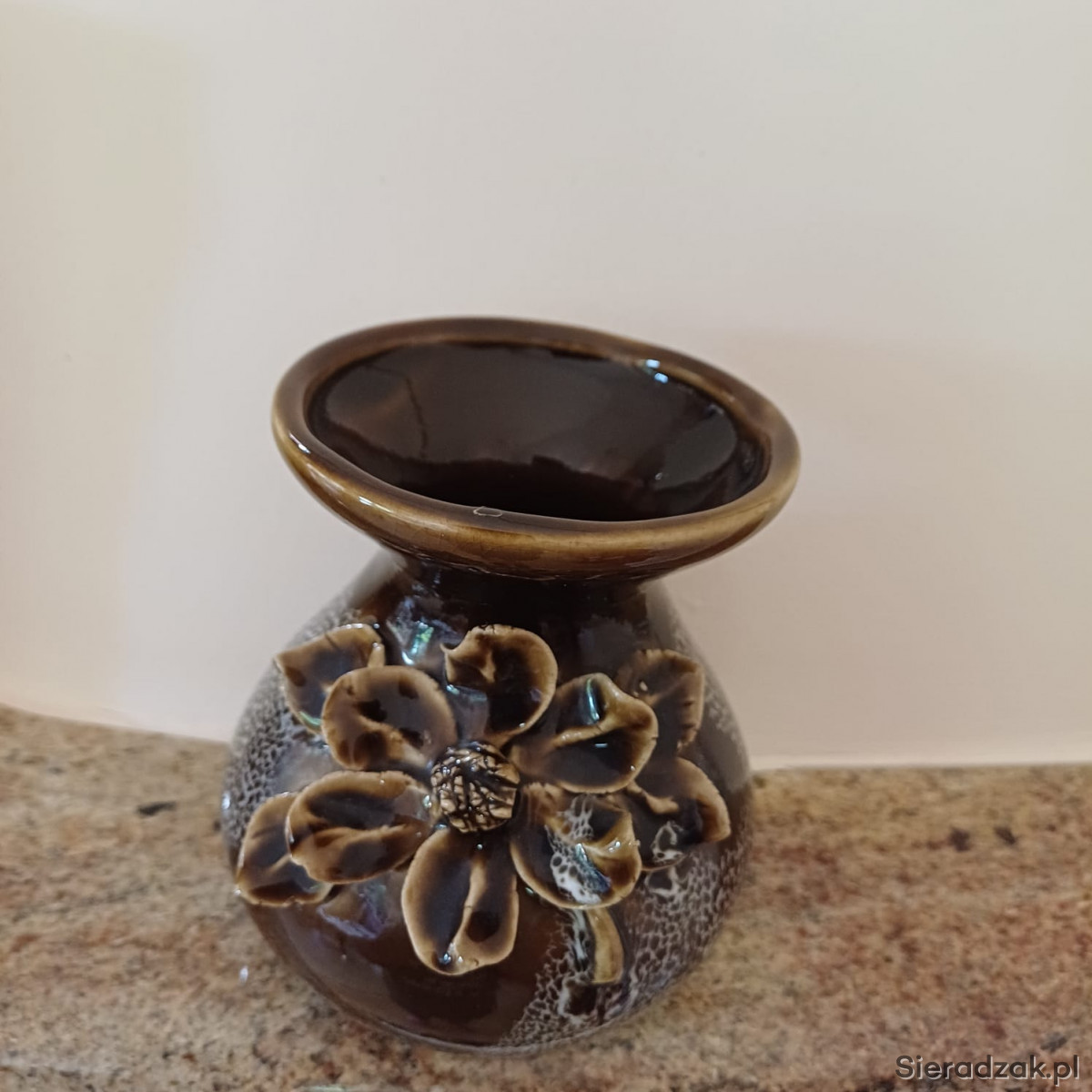 Wazon panterka z kwiatem brązowy PRL