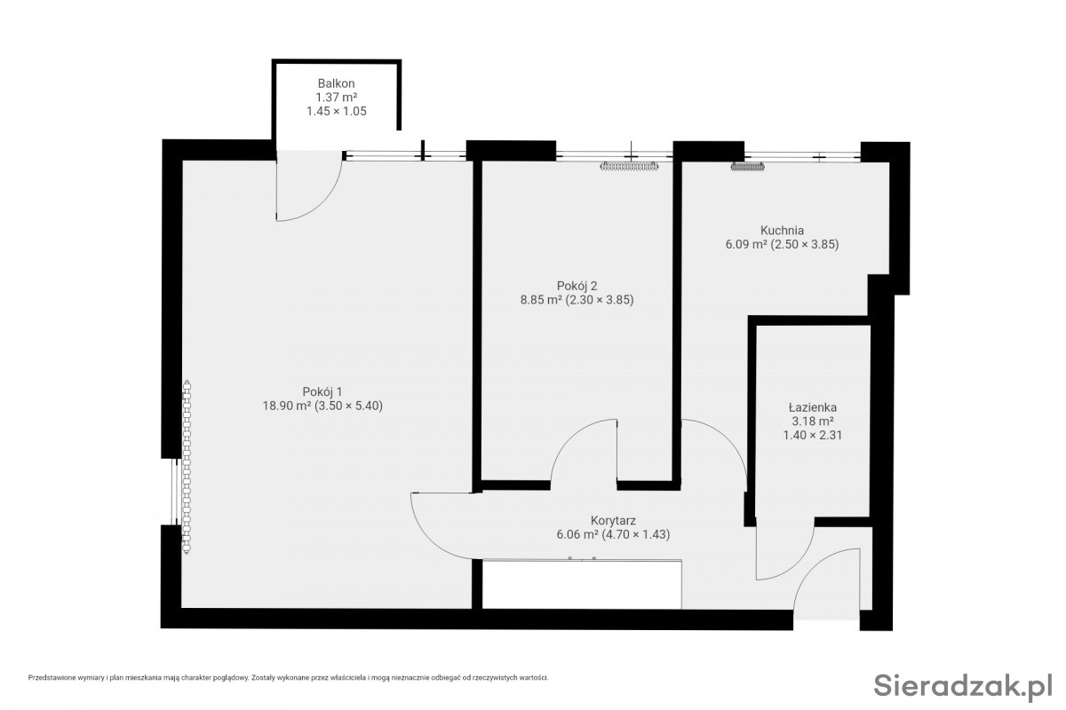 Do sprzedania mieszkanie o powierzchni 43,7 m² położone w Sieradzu przy ul. Krakowskie Przedmieście, w bloku na czwartym piętrze. Lokal składa się z dwóch pokoi, oddzielnej kuchni, łazienki oraz przedpokoju. Dodatkowo do mieszkania przynależy balkon z ekspozycją południowo-zachodnią oraz piwnica.