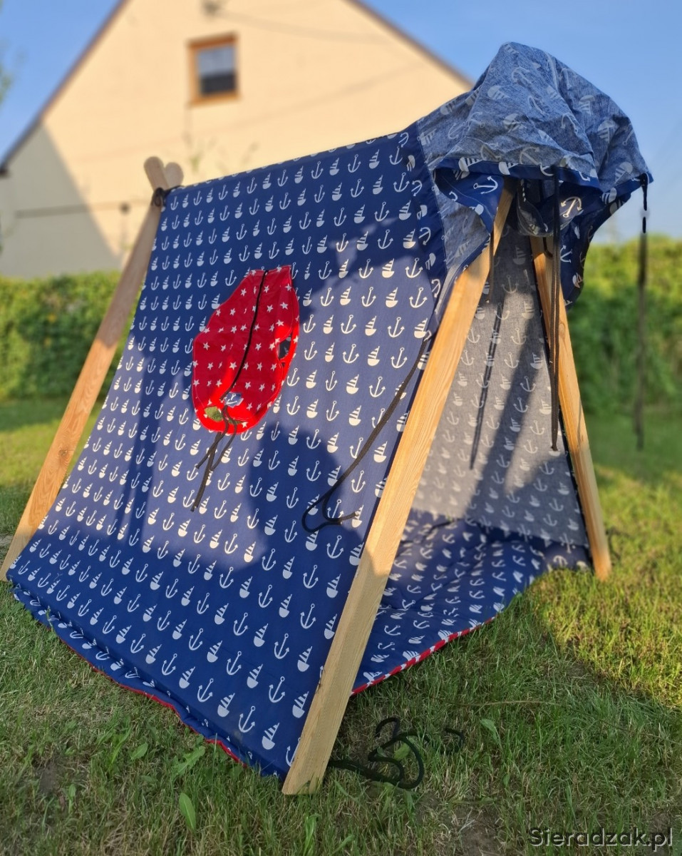 Sprzedam uroczy namiot tipi w marynarskim stylu – idealny do zabawy w domu i w ogrodzie.