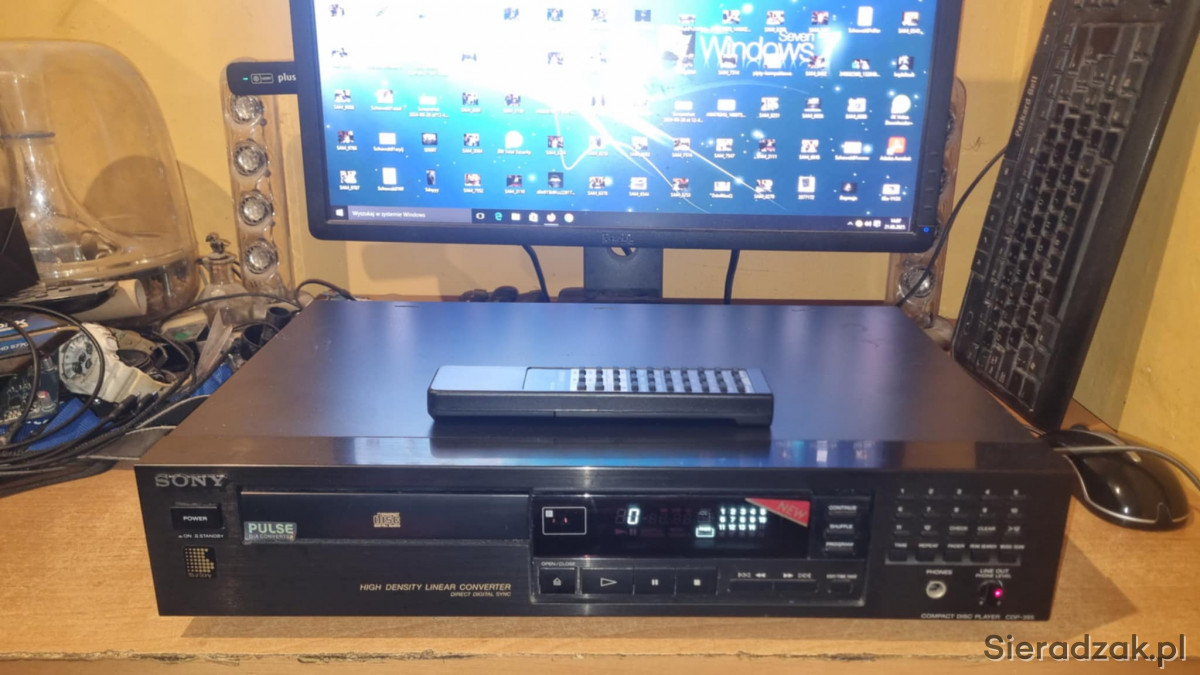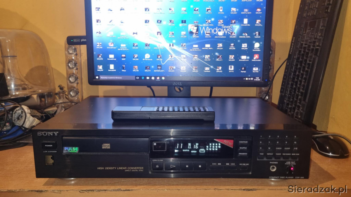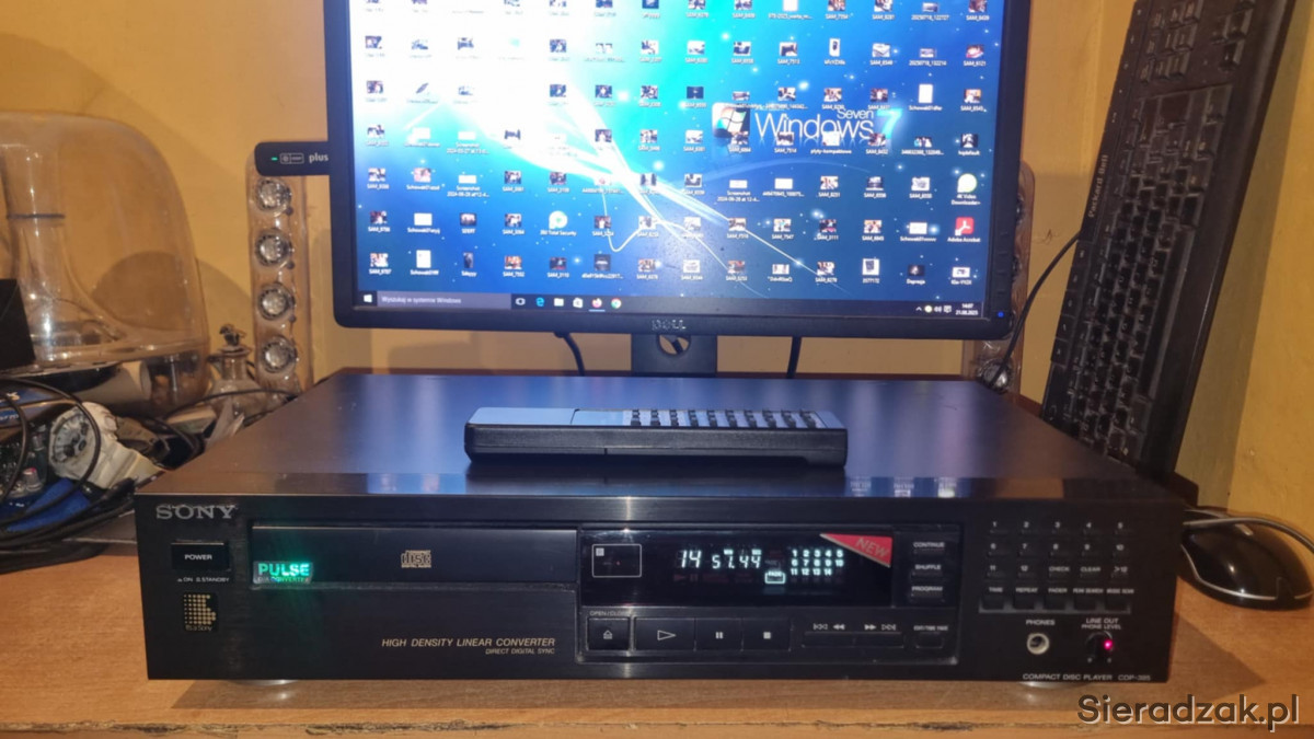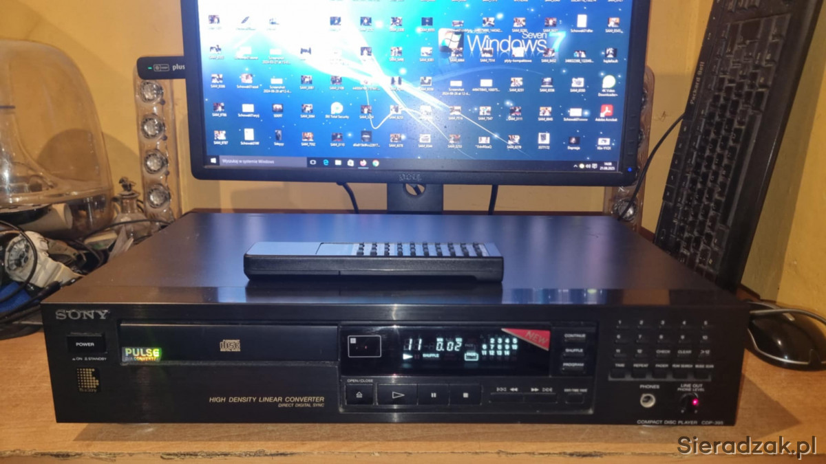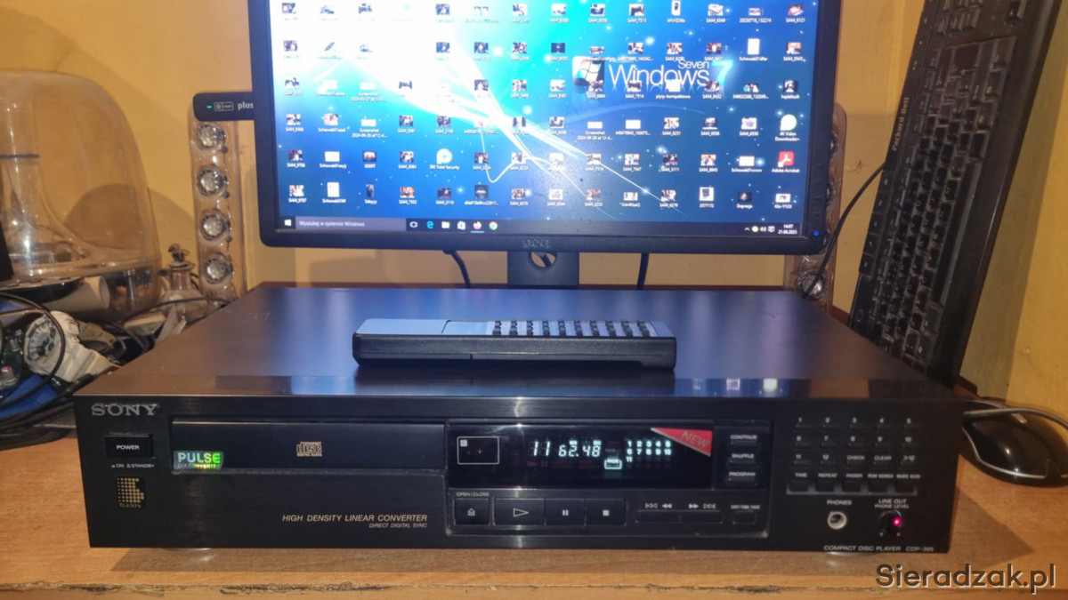 Odtwarzacz CD Sony CDP-395 z pilotem super stan. Był to najwyższy model z serii. 2 pary wyjśc RCA Cinche stałe i regulowane.